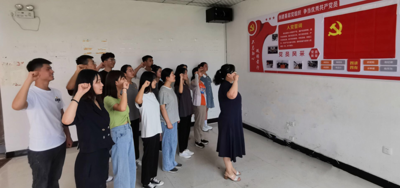 接着,由李兆楠书记领誓,带领全体党员宣誓,大家庄严肃立,举起右手,面对党旗郑重起誓,声音洪亮。而后佩戴党员徽章,将对党的崇敬与热爱牢记于心。