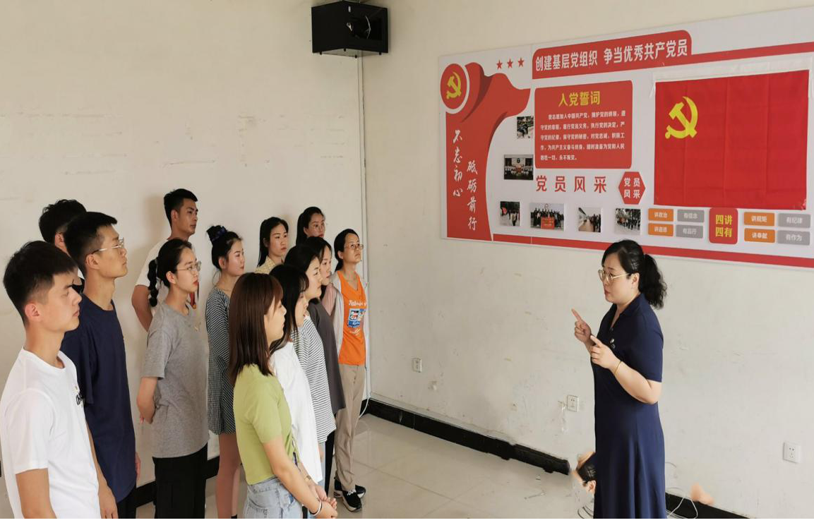 2020年7月2日中午,best365官方网站党总支学生党支部毕业生党员离校党性教育暨“七一”新党员宣誓活动在学校实践活动室顺利举行。best365官方网站党总支学生党支部书记、支委成员及全体预备党员参加会议。会议由组织委员聂蕴老师主持。