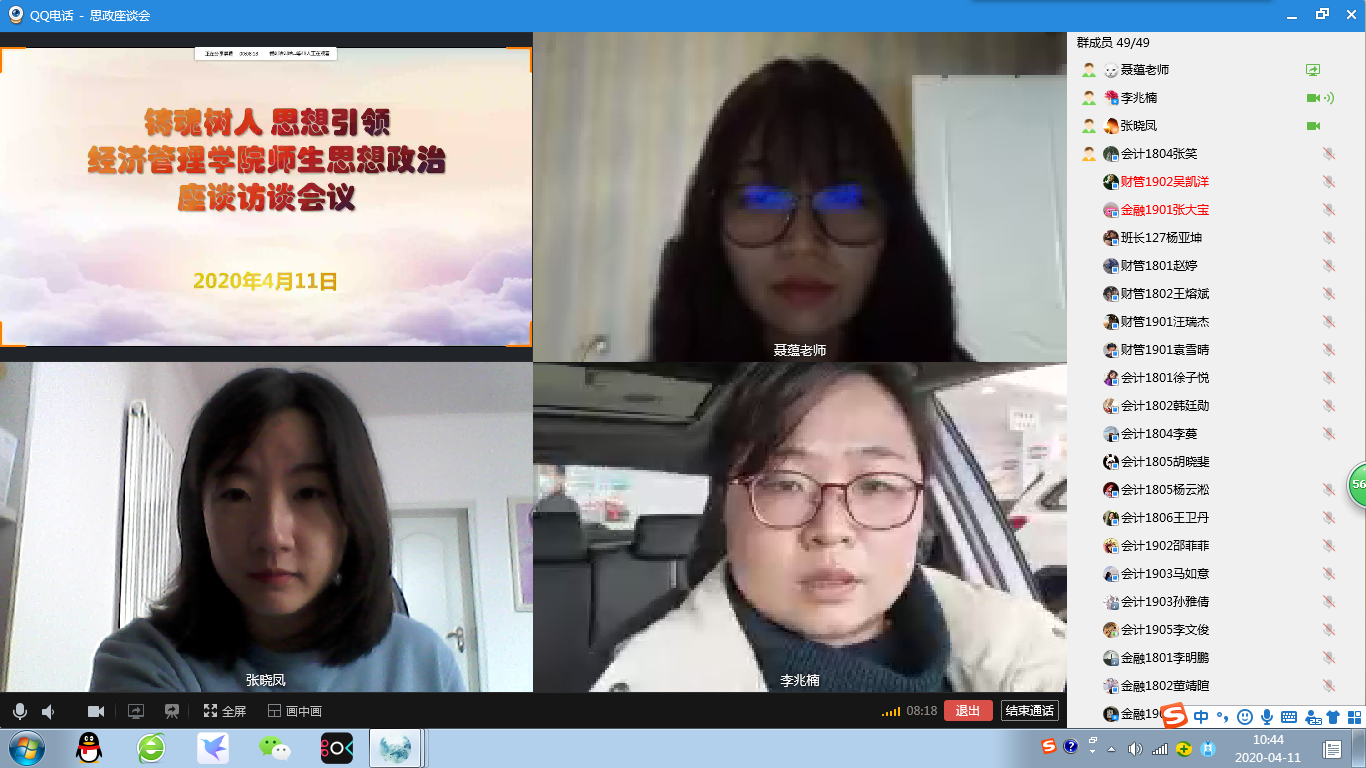 学院党总支副书记李兆楠老师、学院办公室主任张晓凤老师出席此次线上会议,会议由学院团总支书记聂蕴老师主持,与会的还有各年级各班级的学生代表。