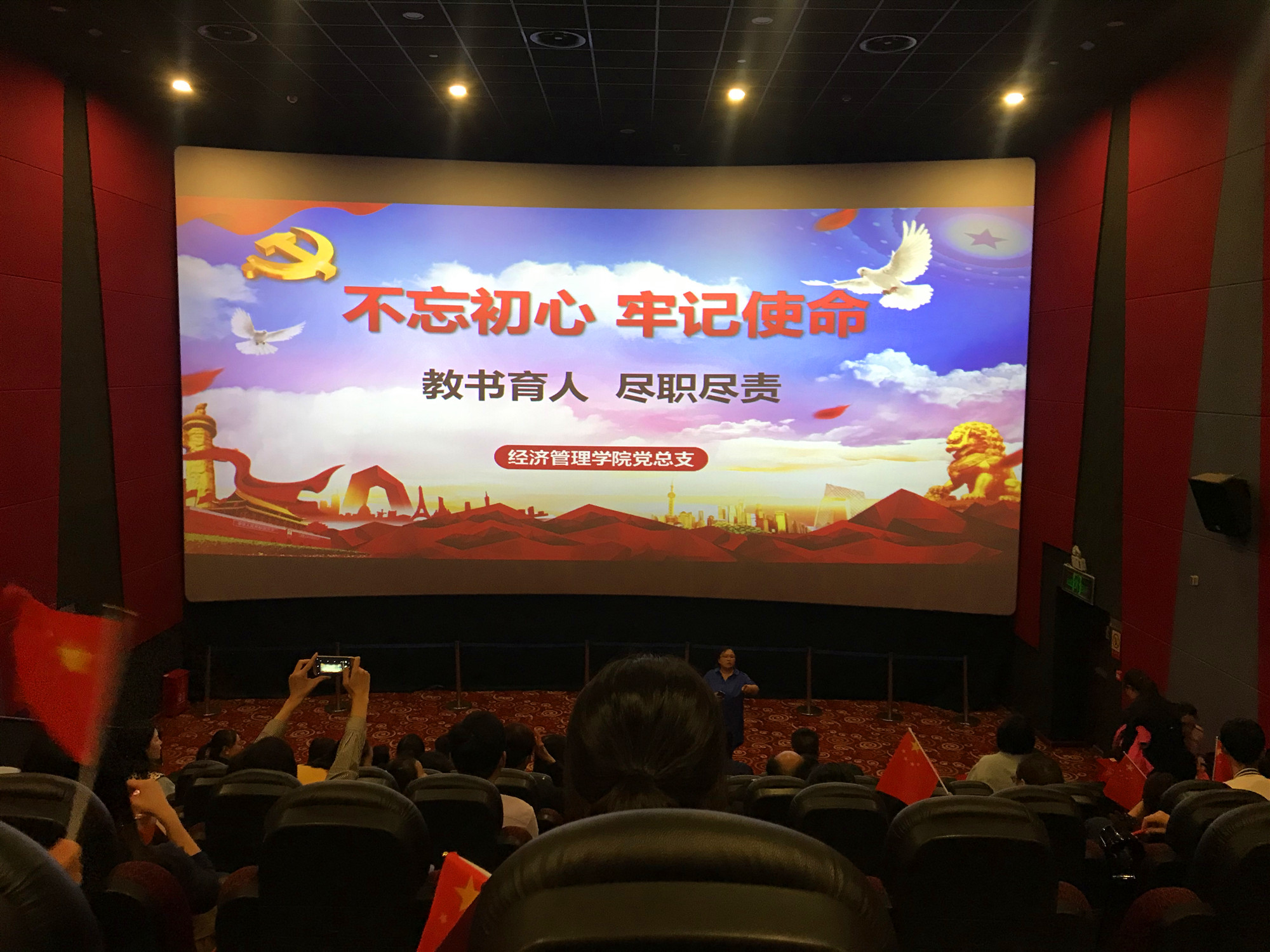 庆祝新中国成立70周年,进一步深化开展“不忘初心、牢记使命”主题教育,充分发挥红色电影资源优势,大力弘扬爱国主义精神,best365官方网站党总支于2019年10月8日组织全体党员及教师进行了“我和我的祖国”观影主题教育活动。