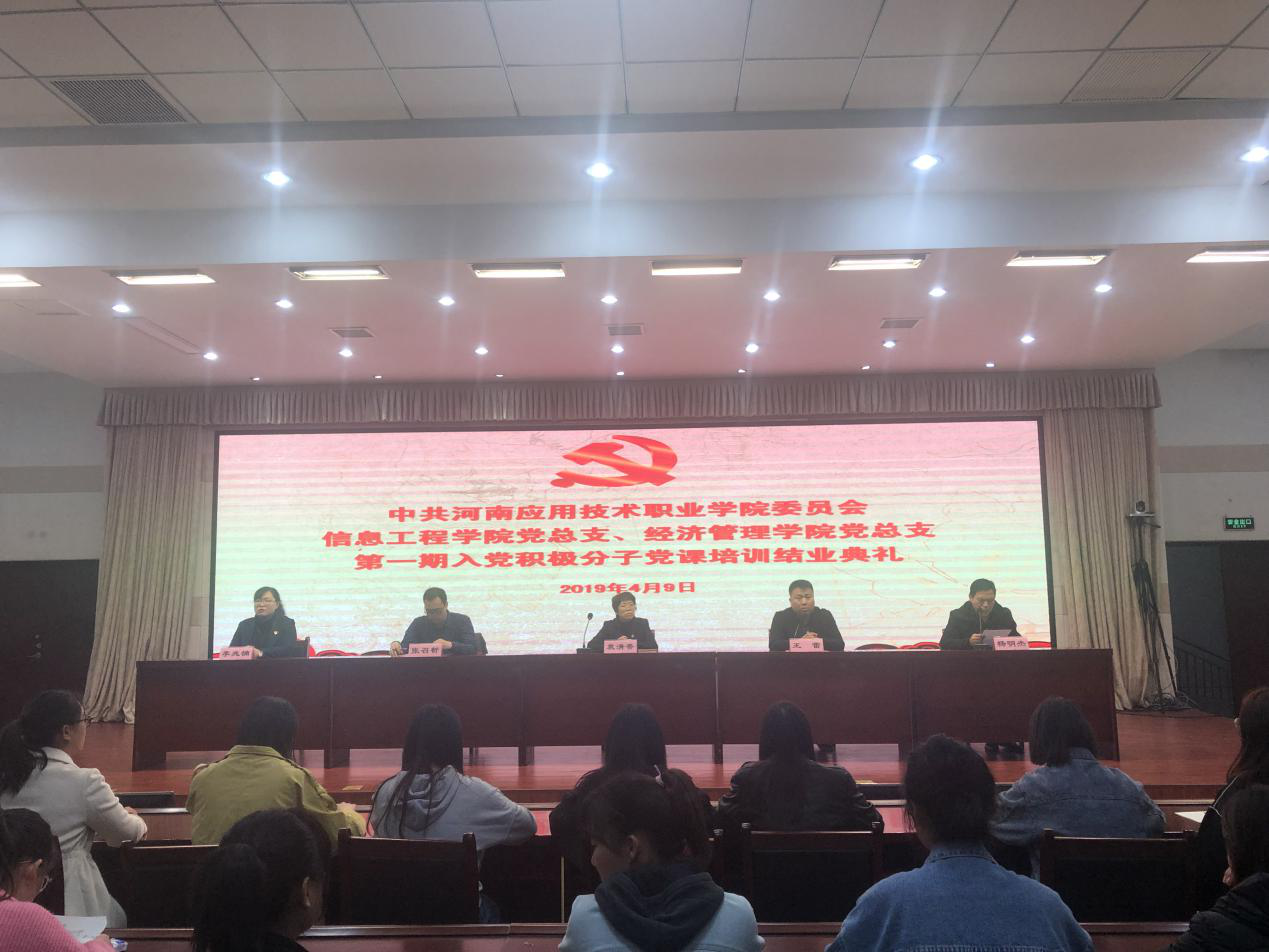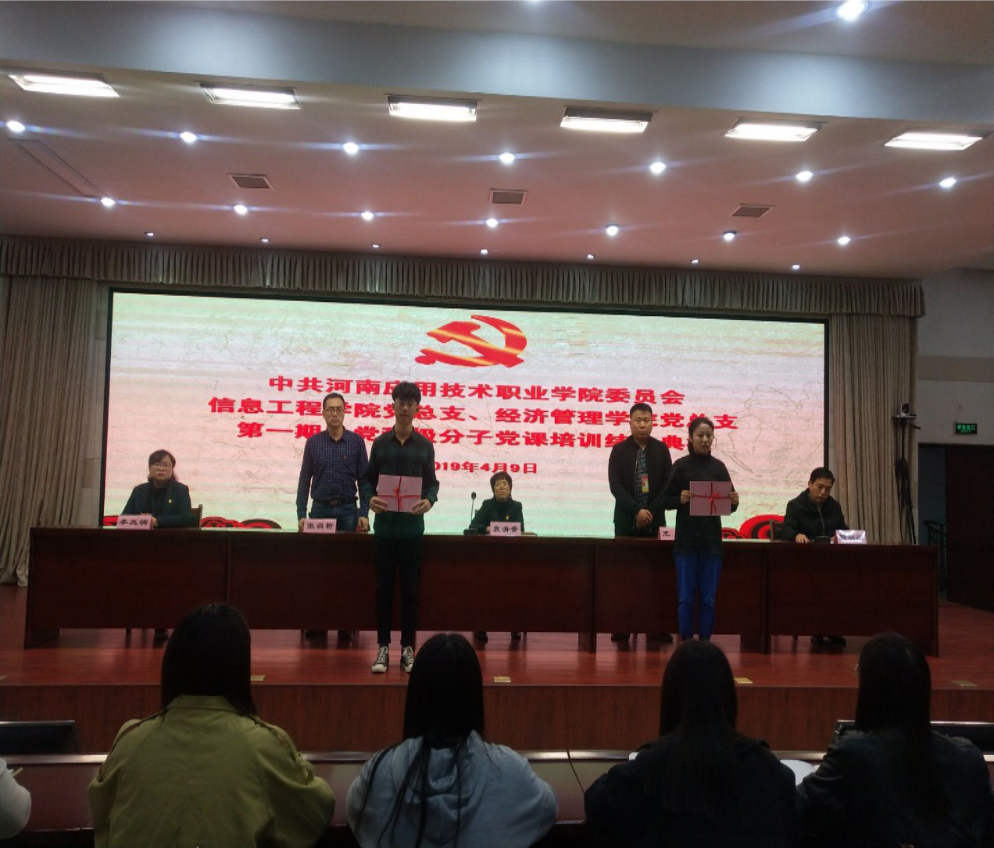 为引导入党积极分子严格以党员的标准要求自己,并坚定自我理想信念,不忘入党初心,继续前行。2019年4月9日14点,best365官方网站党总支联合信息工程学院党总支在实训楼二楼会议室开展了入党积极分子培训结业典礼。本次结业典礼由best365官方网站党总支书记袁清香老师、信息工程学院院长王雷老师、best365官方网站院长张召哲老师、信息工程学院党总支副书记杨明杰老师、best365官方网站党总支副书记李兆楠老师及全体顺利结业的120名入党积极分子参加。