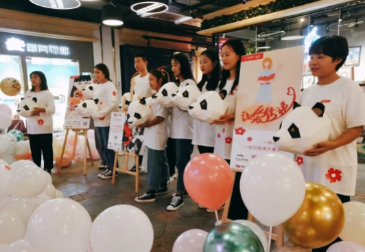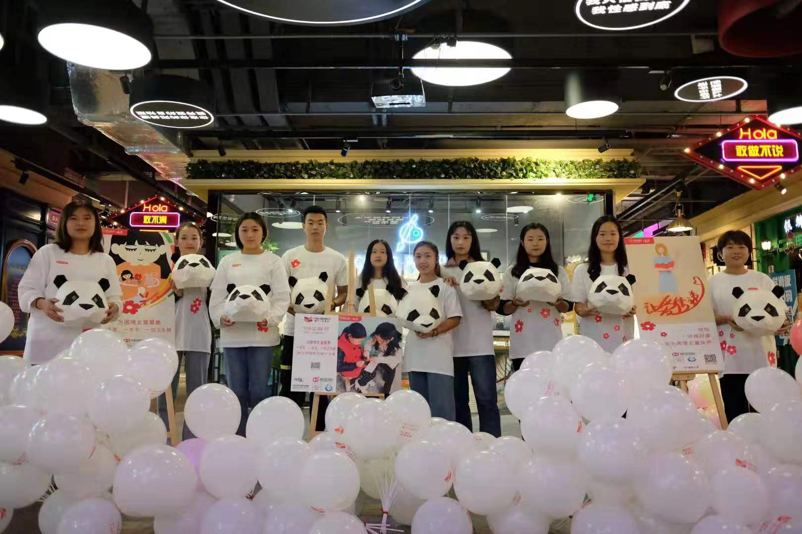 为关爱广大留守儿童,帮助留守儿童健康成长,9月14、15号,正值中秋佳节,万家团圆的日子。一群头戴熊猫面具、身着T恤的best365官方网站best365官方网站的志愿者出现在郑州万象城,向过往行人宣传偏远贫困地区女童的生存状态,并向大家展示他们身上手绘的小红花,“99公益日一起爱”等文字和图案。
