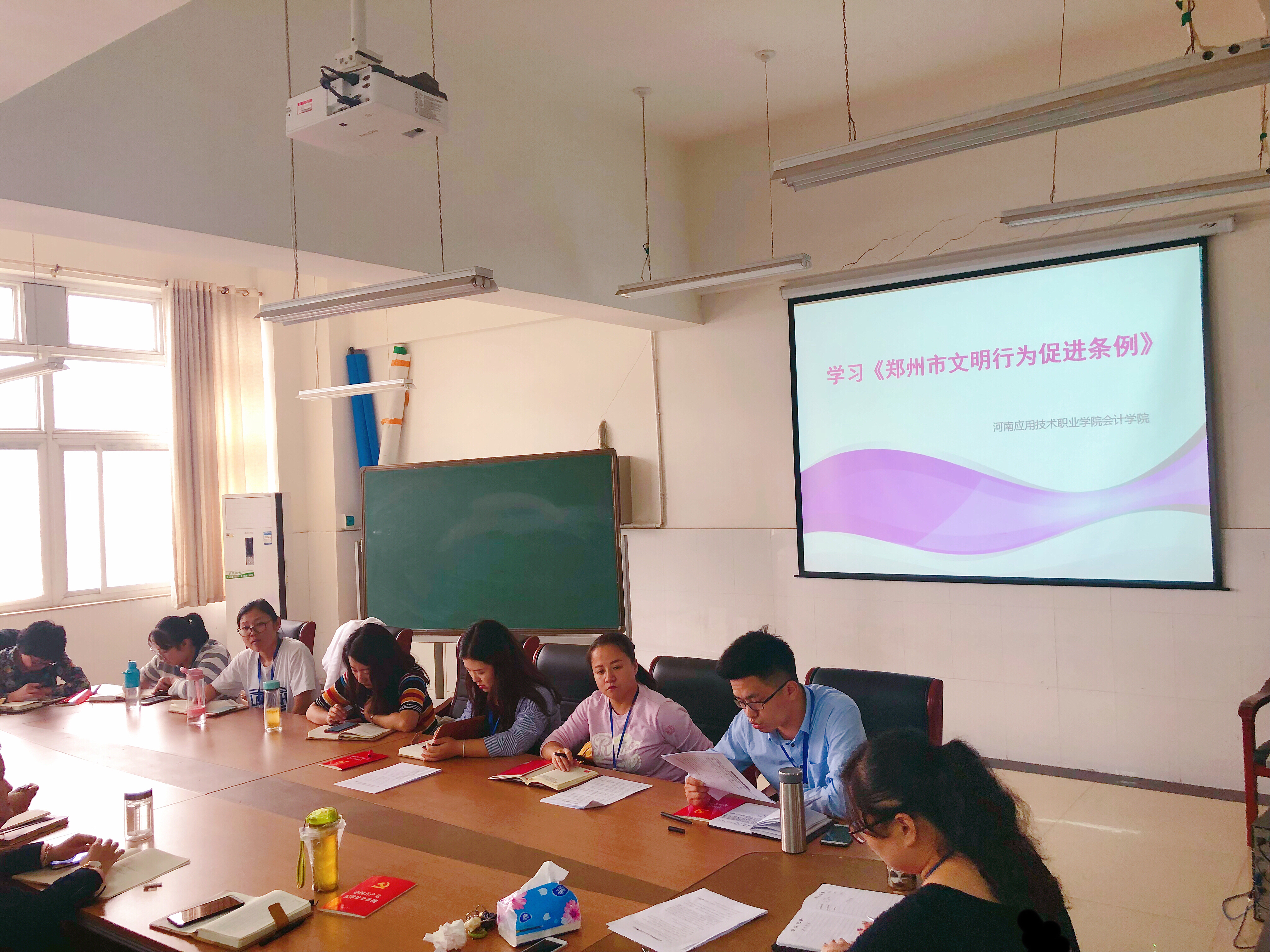 最后李小闯老师领学了《郑州市文明行为促进条例》。要求教职工充分把握《条例》的精神实质和规范要求,不断提升自身文明素养,充分展现省级文明单位良好的精神面貌,为郑州市生态文明城市建设做出积极贡献。