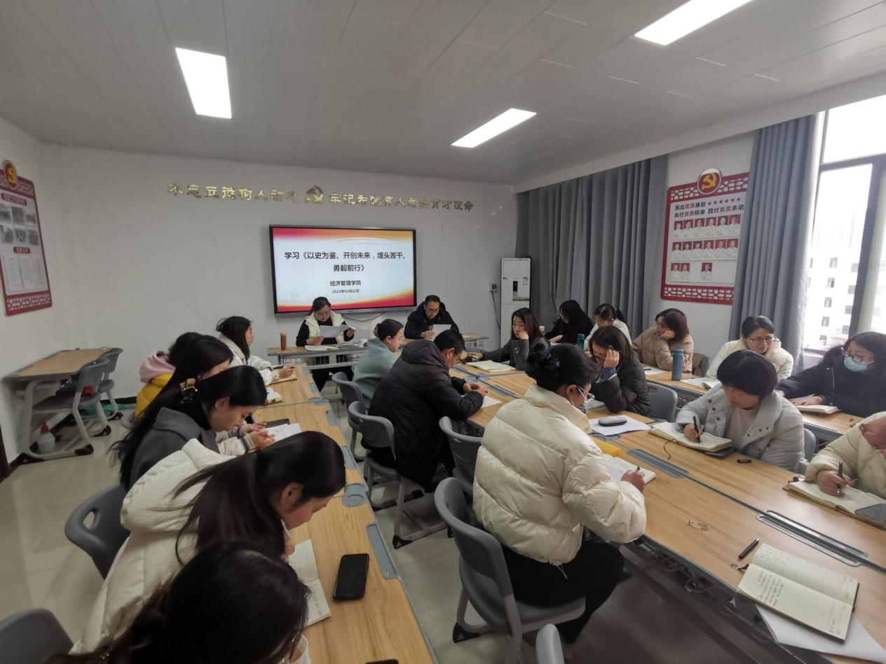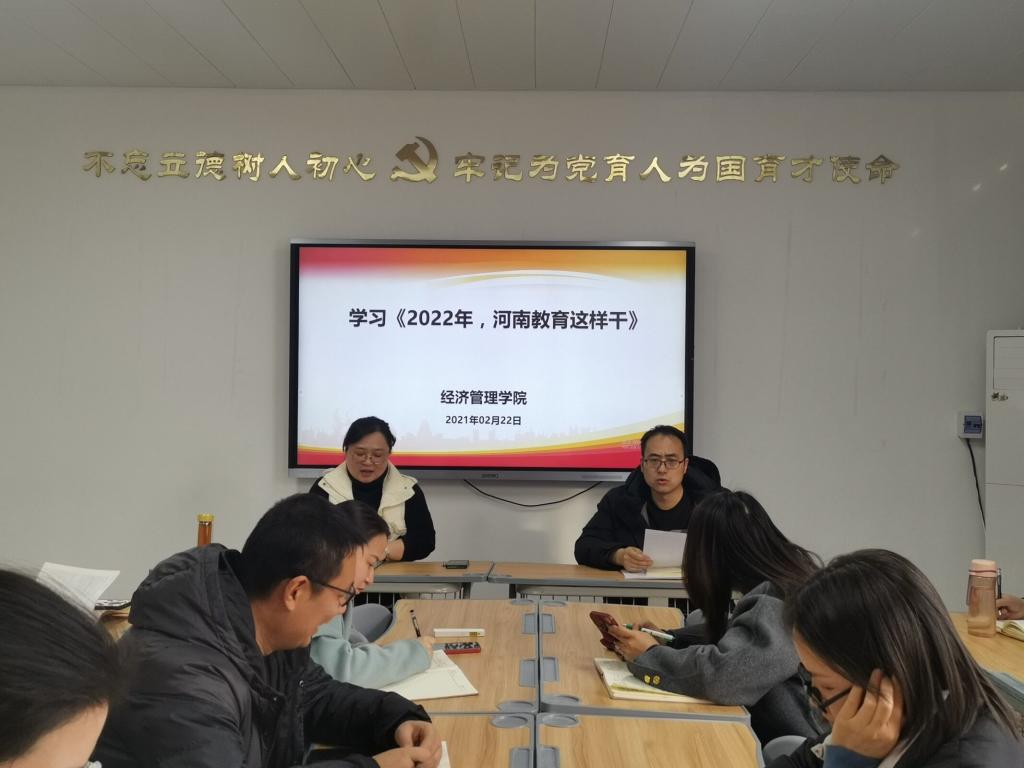 院长张召哲领学,全体党员及教师共同学习了习近平总书记2021年11月11日在党的十九届六中全会第二次全体会议上的讲话——《以史为鉴、开创未来,埋头苦干、勇毅前行》,以及1月22日河南省教育厅部署召开的2022年度教育工作会议内容。结合best365官方网站实际对省教育厅十项重点工作内容逐条解读。明确2022年工作方向!