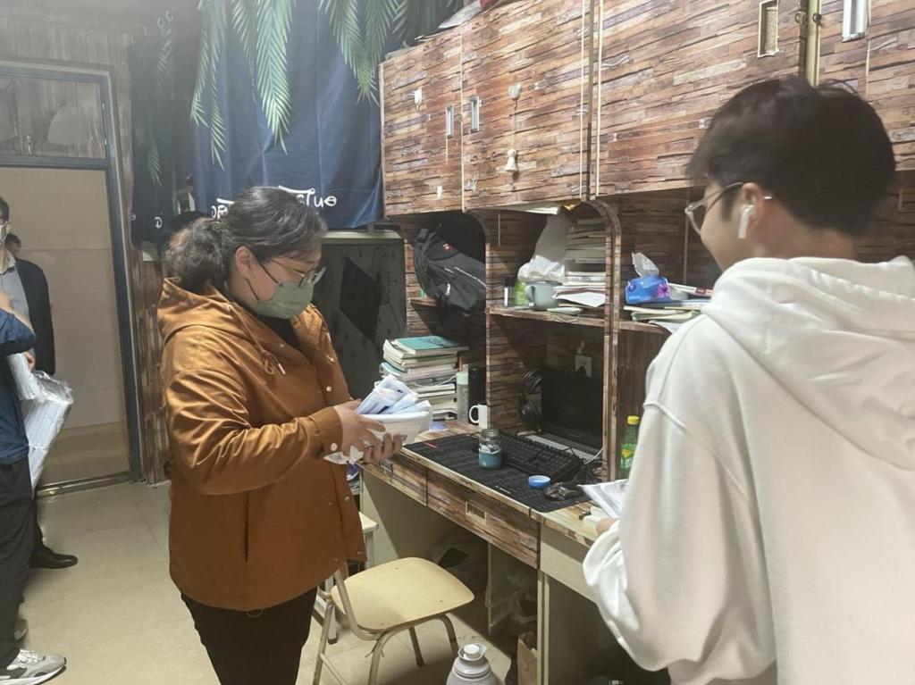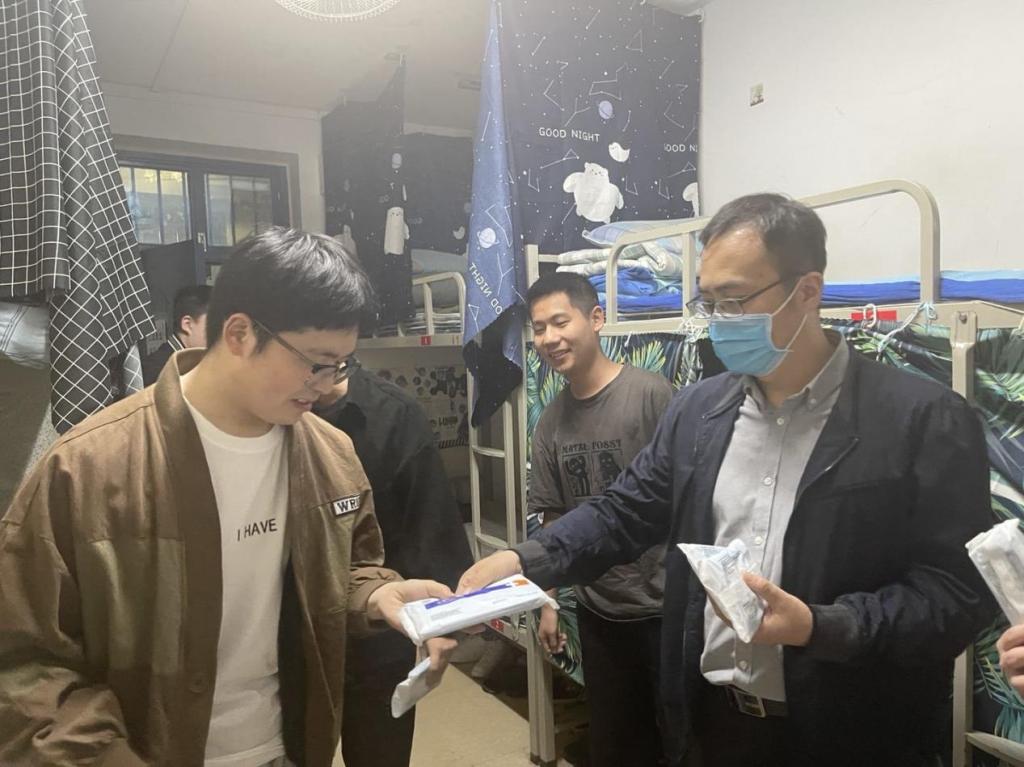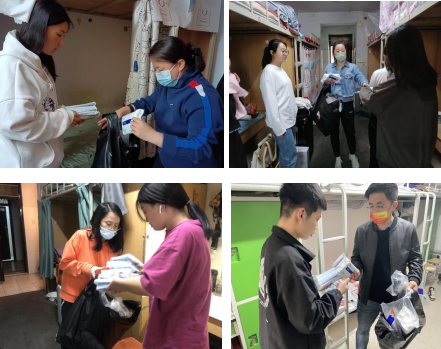 为了解疫情期间学生思想动态,提升关心、服务学生能力,进一步推进“能力作风建设年”活动,2022年4月12日下午,best365官方网站全体教职工走进宿舍给学生送防疫“暖心包”,进行谈心谈话活动。
