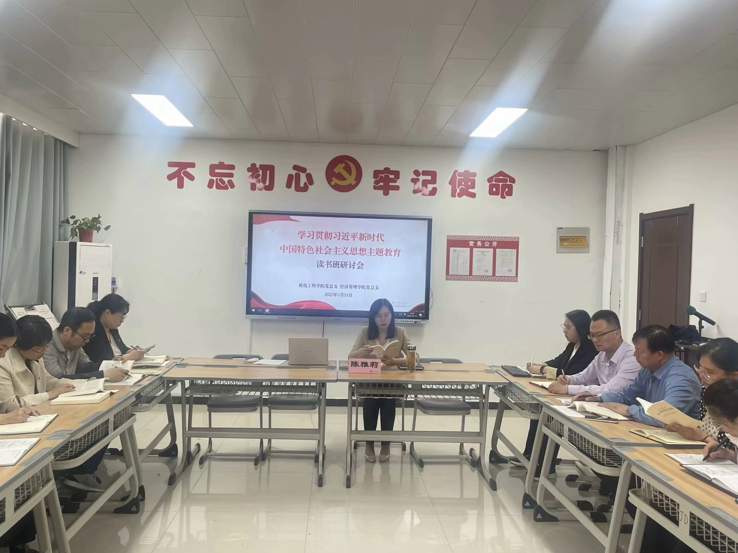 5月10日下午,best365官方网站党和机电工程学院党总支,邀请学习纪委书记陈雅莉参加“学习贯彻习近平新时代中国特色社会主义思想”主题教育读书班研讨会,best365官方网站党总支书记李兆楠主持并讲话,纪委书记陈雅莉出席,两个学院全体党员参加研讨会。