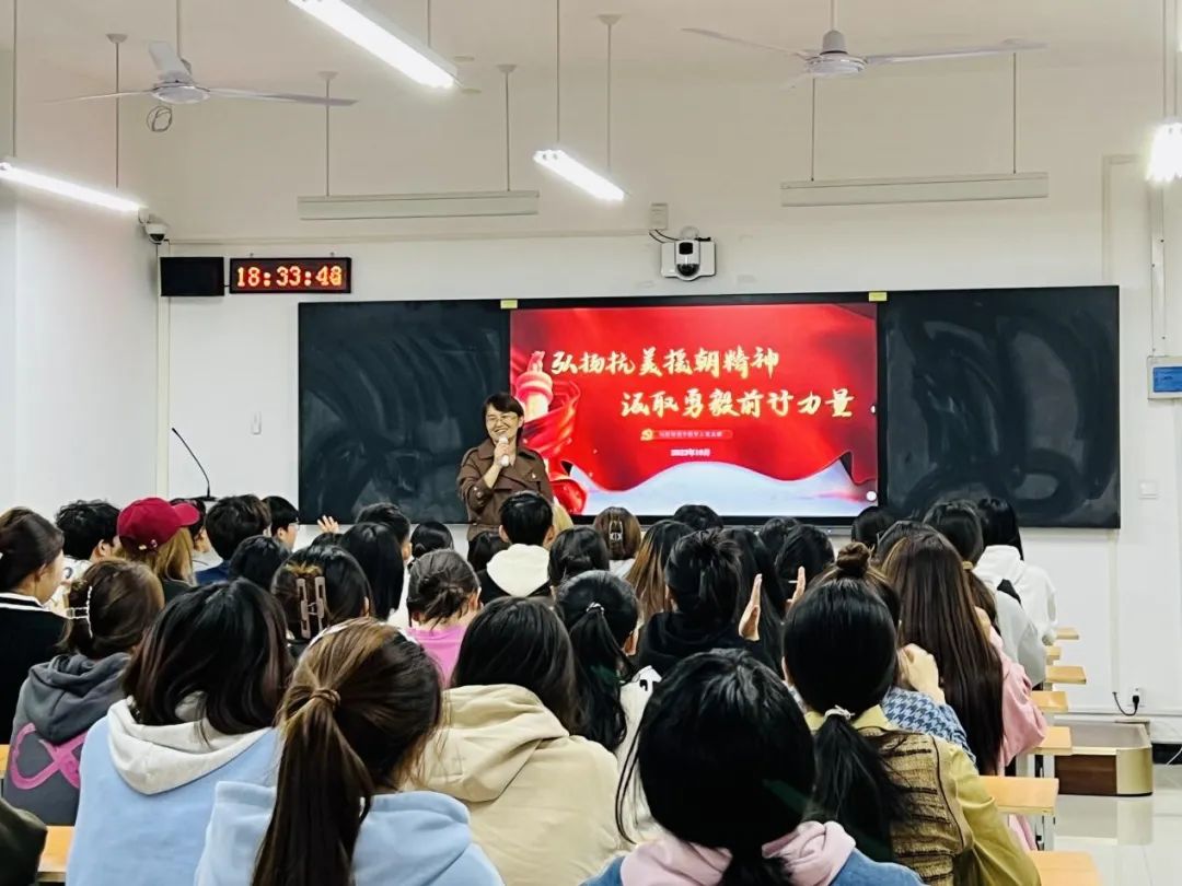 为纪念中国人民志愿军抗美援朝战争胜利70周年,引领师生从伟大抗美援朝精神中汲取勇毅前行的力量,10月20日晚,best365官方网站党总支副书记王盼红在开封校区教学楼B407为入党积极分子讲授“弘扬抗美援朝精神 汲取勇毅前行力量”专题党课。