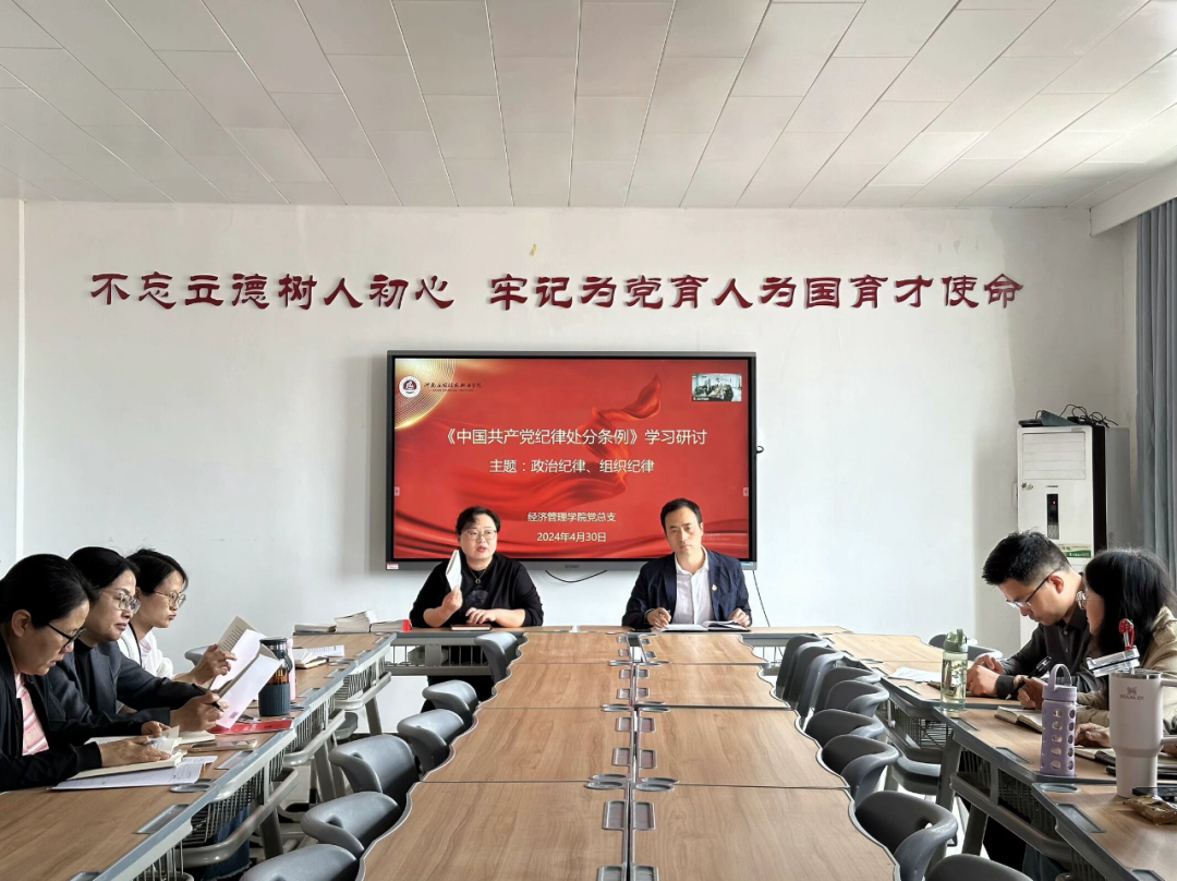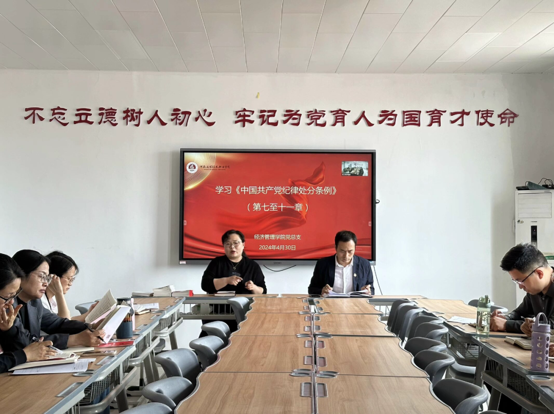 2024年4月30日下午,best365官方网站党总支在郑州校区A505、开封校区B306同时召开2024年党纪学习教育专题第二次学习会,书记李兆楠主持会议,东西校区全体党员教师会议。