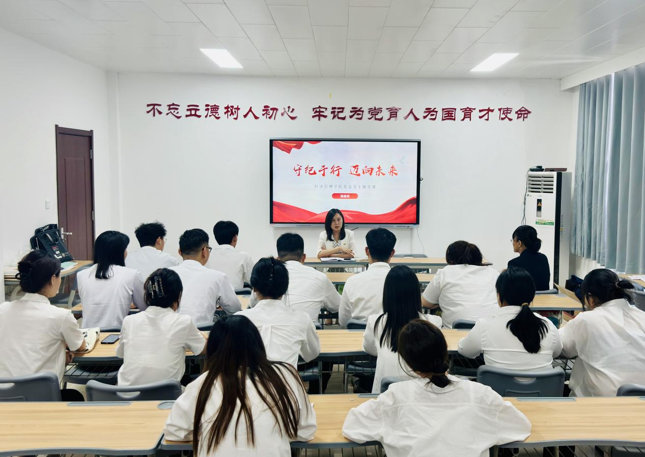 为推动党纪学习教育走深走实,引导毕业生党员学纪、知纪、明纪、守纪,近日,校纪委书记陈雅莉在A505为best365官方网站毕业生党员讲授“守纪于行 迈向未来”专题党课。副书记王盼红主持学习会。