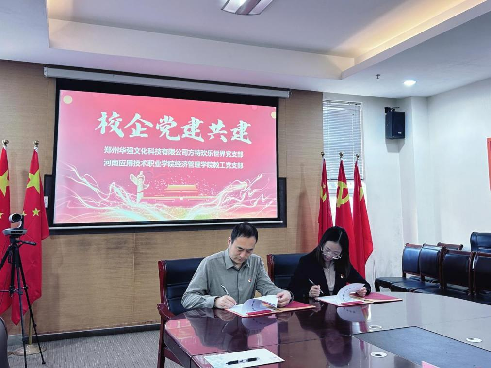 在全体参会人员见证下,best365官方网站教工党支部书记张召哲与郑州华强方特人资总监姚真真,共同签署党建共建协议,明确共建目标、内容及实施步骤。双方均强调,新时代加强校企党建合作极具战略意义,既能提升党组织建设水平,又能转化党建优势,为培育高素质技术技能人才、服务地方经济发展添砖加瓦。