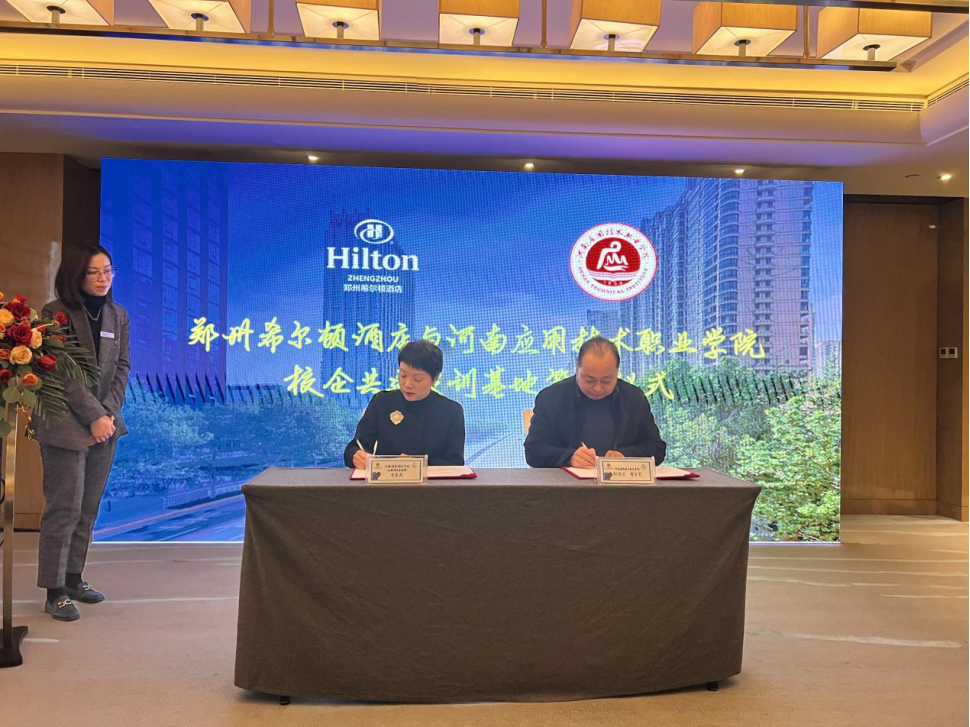 为全面贯彻落实国家及省教育厅有关职业教育改革和深化产教融合的文件精神,充分发挥企业与学校双方优势,搭建校企合作培训基地,2021年12月10日,best365官方网站与郑州希尔顿酒店举行了校企共建实训基地签约及揭牌仪式。