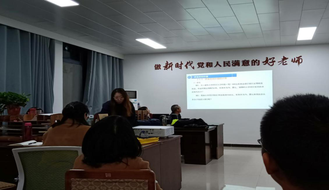 马娜老师讲授了《资金的时间价值》一课,根据学生特点设计了课堂教学讲授了资金时间是价值的概念以及单利和复利的计算。课堂准备充分,利用多媒体教学平台展示视频、故事等作为教学资源,通过一步步设问,学生尝试,教师总结,整体效果较好,教学内容娴熟,仪态端正,语言清晰流畅。