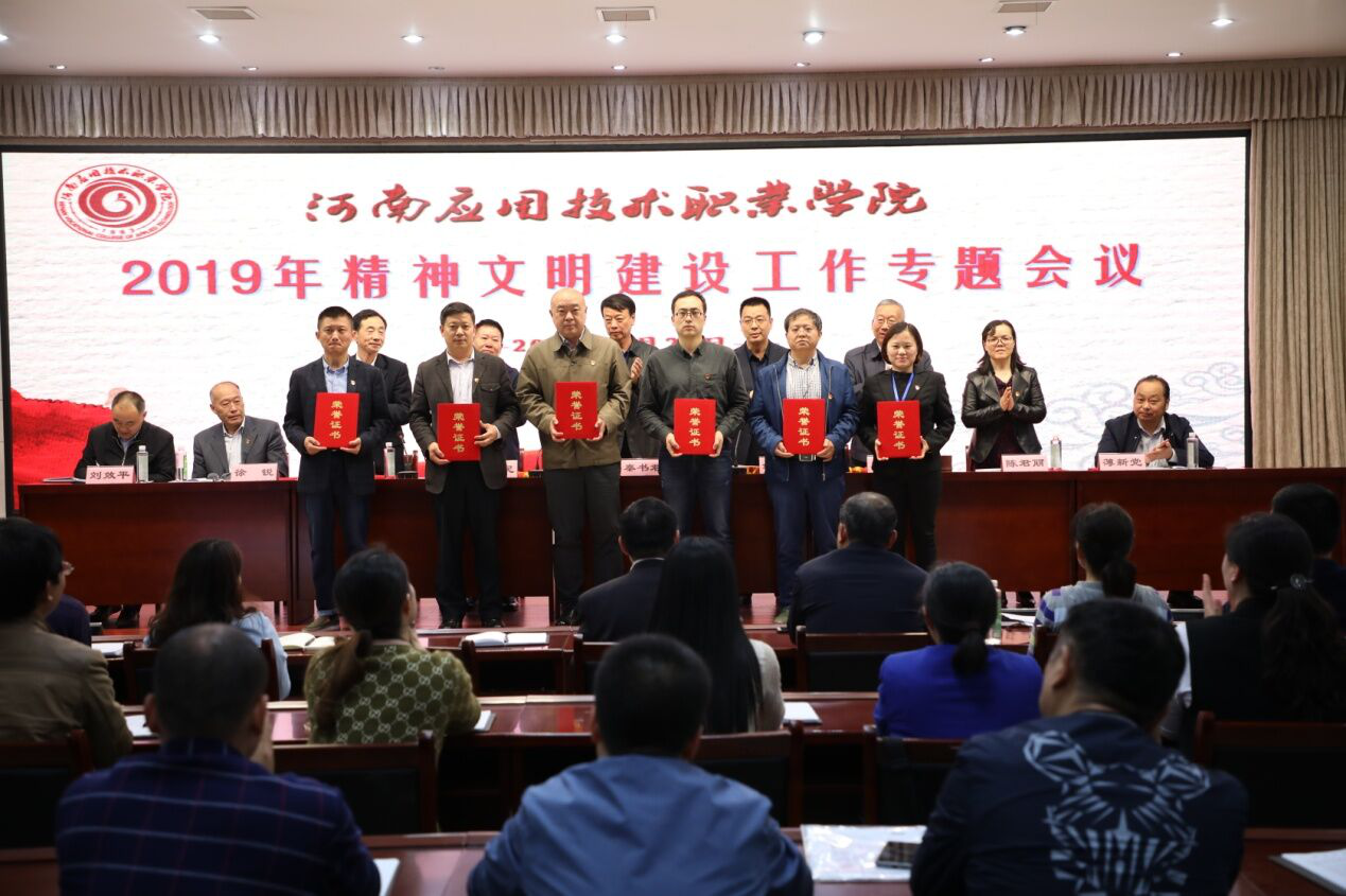 近日,在best365实训中心二楼会议室召开了东西校区2019年精神文明建设工作专题视频会议,学校全体党委委员、各部门主要负责人及全体教职员工参加会议。会上,副校长赵玉奇代表校党委宣读了《关于表彰2018年度“文明处室(院部)”、“文明教研室”、“文明食堂”、“文明职工”的决定》。我院表现突出被评为“2018年度“文明处室(院部)”、会计教研室被评为“文明教研室”。
