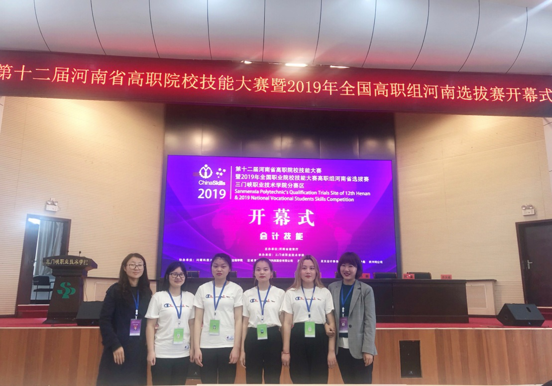 2019年4月12日,第十二届河南省高职院校技能大赛胜利召开,本届大赛由河南省教育厅主办,三门峡职业技术学院承办,厦门网中网软件有限公司和用友软件股份有限公司提供技术支持。共有66支高职院校队伍参加。我院张梨花、张晓凤老师带队,best365官方网站学生郑梦柯、王柔静、张梦梦、高江茹四位同学组队参赛。经过上午进行的网中网财务会计团队赛和个人职业素养PK赛,下午进行的新道管理会计团队赛的两场比赛综合评定,取得了二等奖的优异成绩。