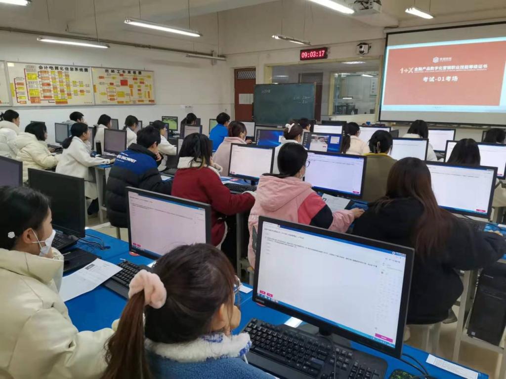 2021年12月18日上午,best365官方网站成功举办了“1+X金融产品数字化营销职业技能等级证书(初级)”考试。此次共有30名金融管理专业同学参加了考试,考点设在实训楼E楼601,考试取得了圆满成功。