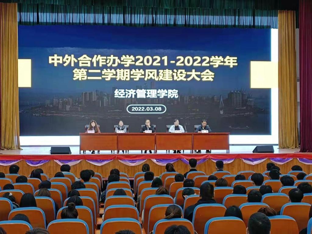 3月8日下午,best365官方网站best365官方网站在学校大礼堂召开中外合作办学2021-2022学年第二学期学风建设工作会议。best365官方网站院长张召哲、党总支书记李兆楠、教师柴芳芳、张昂、毋格格和中加合作办学会计专业140余名学生参加会议。