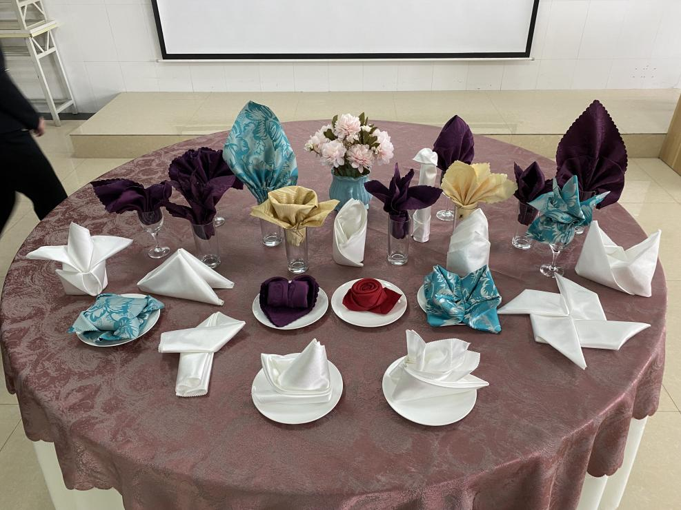 “技能让生活更美好”!小小的餐巾折花不仅能给人视觉上美的享受,也象征了同学们未来回报社会的立身之本,它检验了酒店管理专业学生在餐饮服务工作中的创新设计能力、基础服务技能、灵活应变能力,强化了学生的规则意识、服务意识、卫生安全意识,展示了酒店管理专业学生的精神风貌。