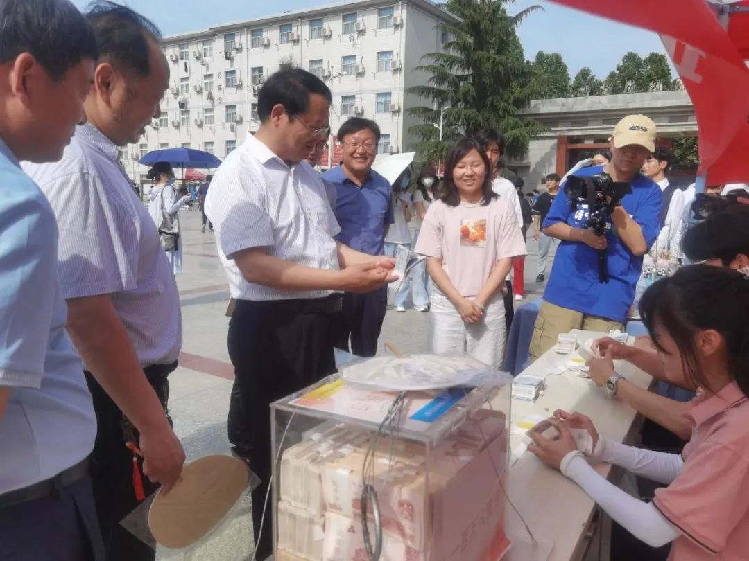 活动期间,金融服务与管理专业学生“花式点钞”技能引来大家驻足观看。手持式五指点钞、扇形拨把点钞、台按式三指点钞、台按式四指点钞、手持式单指点钞等不同点钞技术完美展示了“拆把、点数、扎把”流程。点钞看似单一,实际上需要“快准狠”,点得必须要快,数目必须要准。在弹指与力量、速度与激情的较量间,充分展现了大家的专业技能、专业风采。校领导亲临现场观看,同学们的精彩表现得到了充分的肯定与赞许。