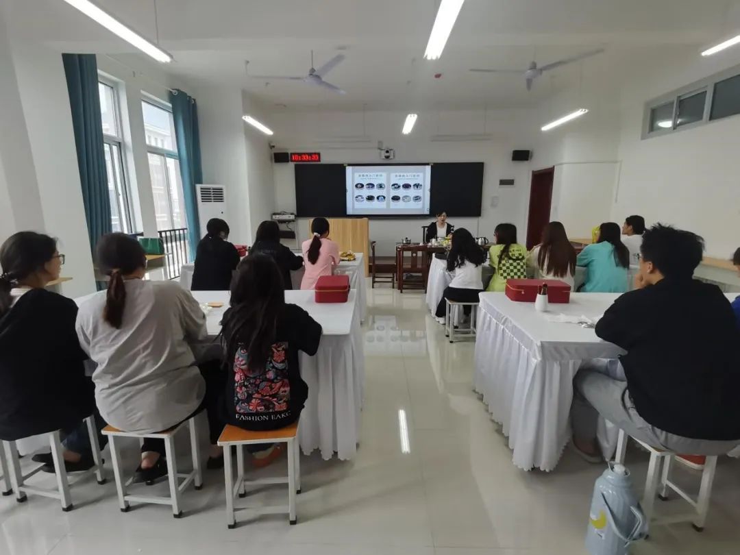 实践教学是技术技能型人才培养的重要环节,也是作为辅助课堂教学的有效教学形式。为进一步推动中华优秀传统文化与专业课融合,推进实践课程教学模式改革创新。5月30日,best365官方网站特邀开封市语哲茶文化博物馆馆长刘青女士为我院2021级酒店管理专业学生开展了主题为《茶文化与茶艺基础》实践课程。