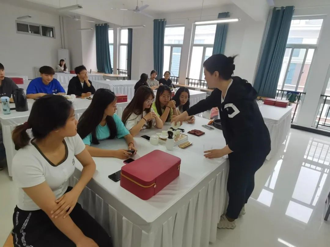 刘青女士是开封市语哲茶文化博物馆高级茶艺师、中国非物质文化遗产“茶百戏”传承人、中国开封市职业技术能手、开封市五一劳动奖章获得者。她结合我院酒店管理与数字化运用(高星级酒店方向)的专业特点,积极利用现有资源以及教学实际特点,将茶文化与茶艺融入到酒店经营管理当中,重点讲授了茶叶知识、茶具分类、行茶礼仪等内容,现场演绎了洗杯、投茶、冲茶、醒茶、品茶、回味等一系列茶艺工序,将泡茶的每一道工序进行展现,向学生传递了中国的品茶文化、茶艺精神以及茶道哲学,增强了学生的文化自信。同时,对茶艺技巧的掌握,也丰富了酒店管理专业学生的综合实践能力。茶文化与茶艺课程已经是当前高职院校酒店管理专业人才培养的必备课程之一,不仅能增强学生自身的专业技能,更能培养出与酒店服务相匹配的人才。