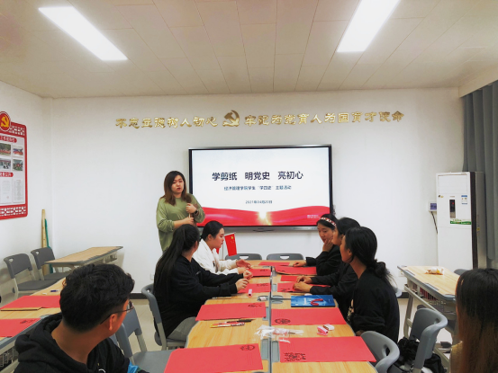 活动中,张琳曼老师先是对剪纸文化进行科普,又给大家展示了相关剪纸作品,让现场的每个人在感受传统文化氛围的同时加深了对党的认识。剪纸,作为非物质文化遗产,有着丰厚的民族文化底蕴。老师现场传授剪纸工艺,同学们灵活的巧手在红纸上飞舞,手拿剪刀兴趣高涨,方寸之间、情意满满,红纸虽薄,情怀却浓,蕴含着对党的祝福和感恩。通过非遗剪纸重温革命精神,感受初心使命,让党史文化学习接地气、添声色。