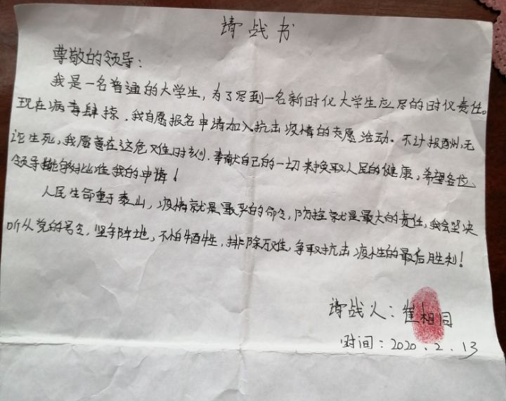 会计1807班的崔相同,家住濮阳市范县陈庄镇崔胡同村。在疫情肆虐的危急时刻,她主动向村委会提交请战书,毅然决然积极投身到家乡的防疫工作中,积极参与村里关于防控疫情的值班工作,在村里防疫责任最重的路口的协助村委会设置临时交通管制点,对村里四类人员入户进行排查,挨家挨户做好详细记录,积极倡导村民科学的做好防护措施。自上岗以来,崔相同同学尽自己最大的努力帮助村里排除疫情隐患,为抗疫工作贡献出自己一份微薄的力量。