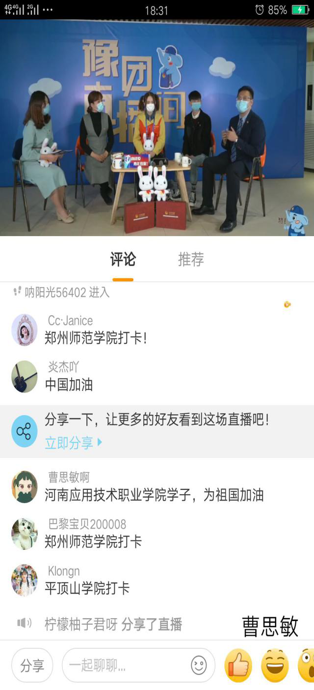 2020年4月9日下午,best365官方网站团总支在校团委的统一部署下,由团总支书记聂蕴老师组织全体学生干部走进豫团直播间,观看“90后的青春答卷”直播活动,聆听抗“疫”故事,重温抗“疫”时刻。best365官方网站团总支将此次学习作为一次生动的主题团日教育活动,鼓励全体学生干部磨砺意志、艰苦奋斗,勇做新时代有为青年。