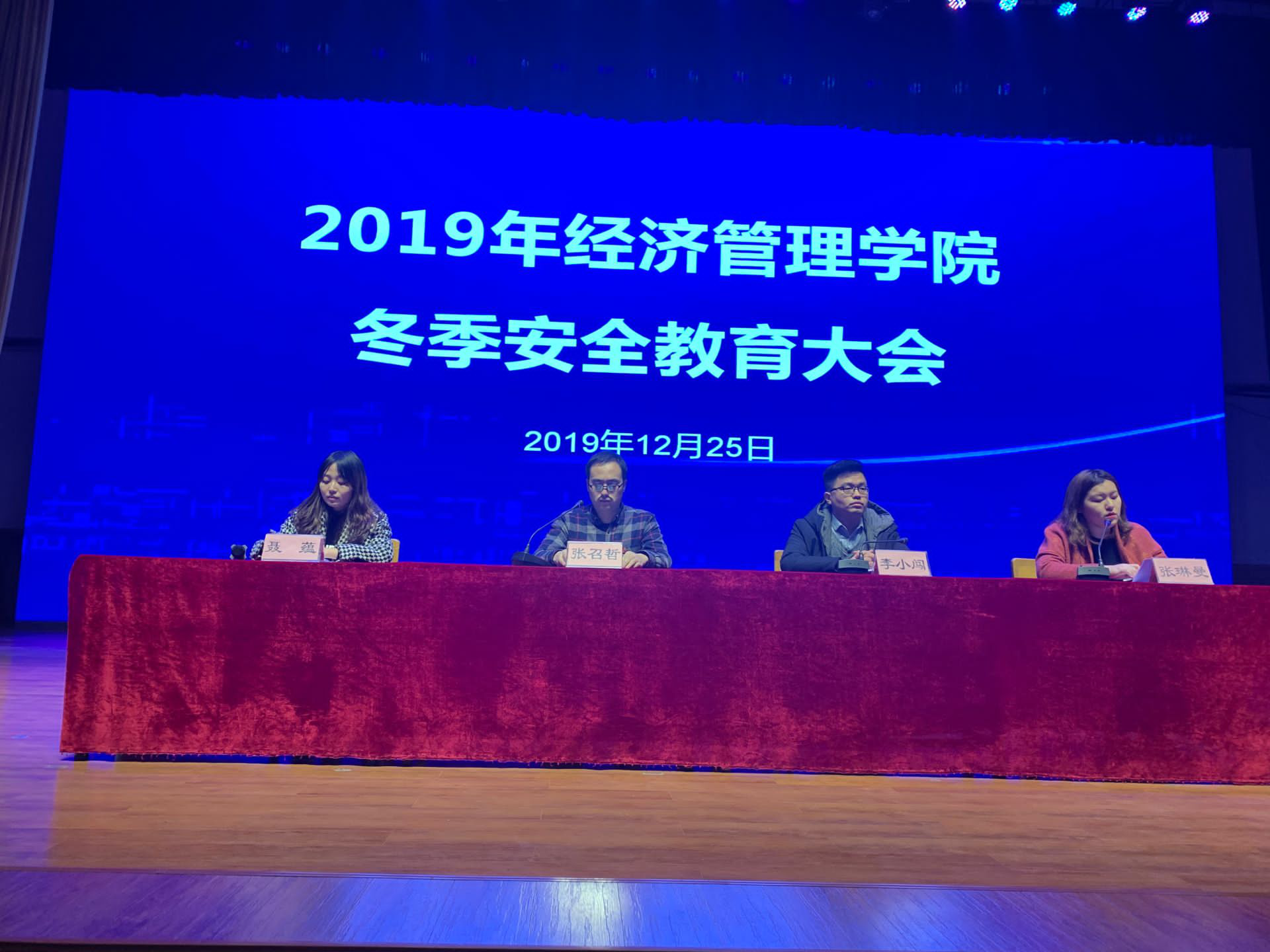 为提高全体学生假期前后安全意识,落实学校安全管理制度,best365官方网站于2019年12月25日下午17点30在学校大礼堂召开冬季学生安全教育大会。出席本次会议的有best365官方网站张召哲院长、办公室主任李小闯老师、张琳曼老师及全体辅导员,会议由团总支书记聂蕴老师主持,2018、2019级全体学生参加。
