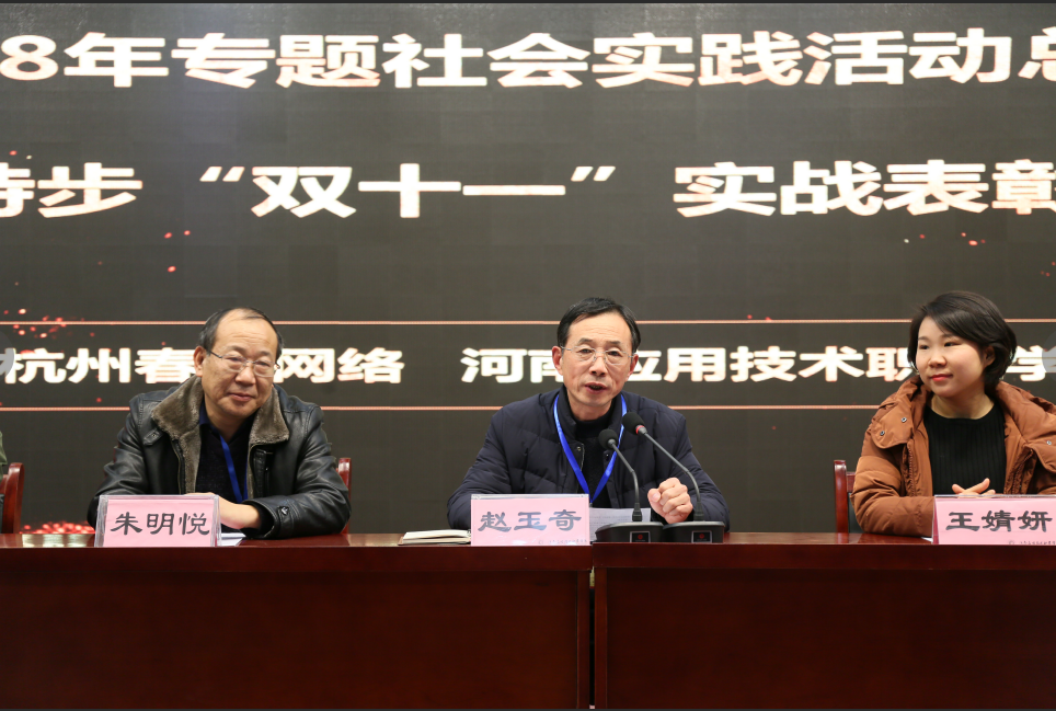 2018年12月13日,会计学院专题就业创业社会实践暨特步“双十一”实战活动在实训中心二楼会议室隆重召开总结表彰大会。副校长赵玉奇、教务处长朱明悦、实训中心主任刘新奇、会计学院院长张召哲、书记李兆楠及杭州春客网络副总经理、特步项目总监出席了本次大会,会议由会计学院院长张召哲主持。