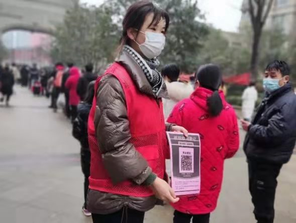 她来自河南省安阳市林州市,当疫情在她的家乡蔓延时,她第一时间报名参加了社区抗疫志愿服务。在志愿服务中,她负责协助医护人员登记信息,室外核酸检测完成后,又协助医护人员对行动不便的老人进行上门检测。