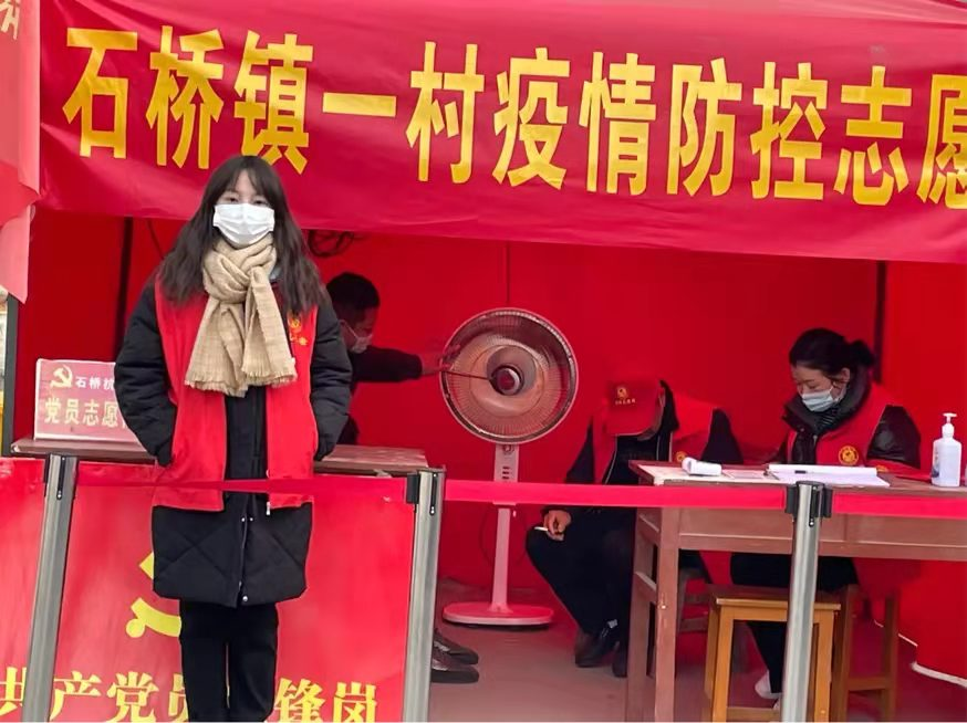 她家住南阳市卧龙区石桥镇,在寒假期间,主动报名参加了返乡大学生疫情志愿者服务岗。
