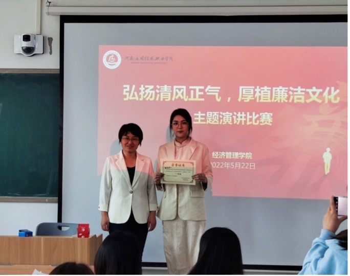 为深入学习贯彻习近平新时代中国特色社会主义思想,推动best365形成崇廉尚廉的浓厚氛围,在师生中厚植诚信立人、遵纪守法、廉洁奉公的道德意识。5月22日,best365官方网站团总支于SC305开展了“弘扬清风正气,厚植廉洁文化”主题演讲比赛,best365官方网站副书记万盼红、辅导员孙宇晴担任评委,20余名选手参赛。