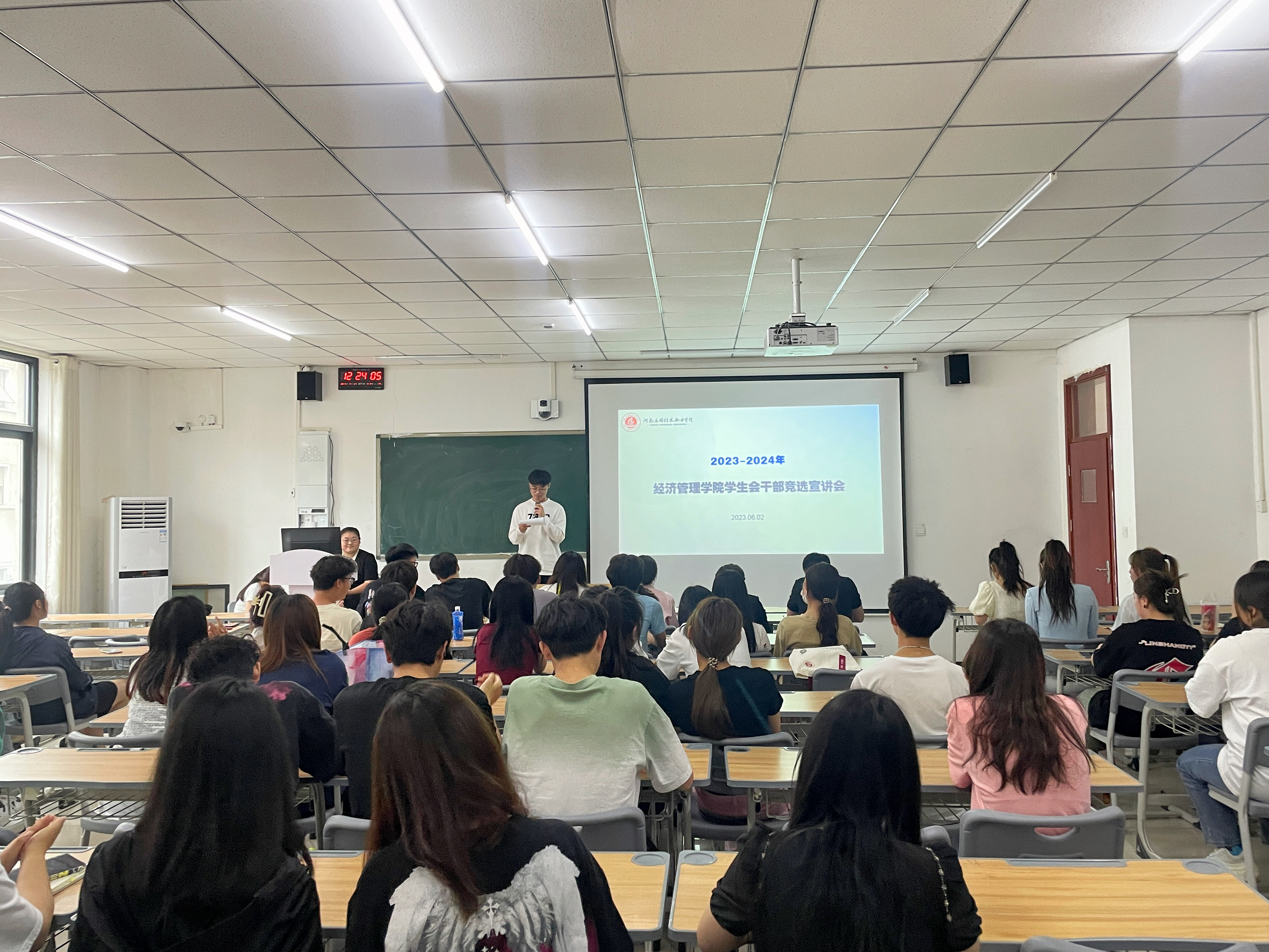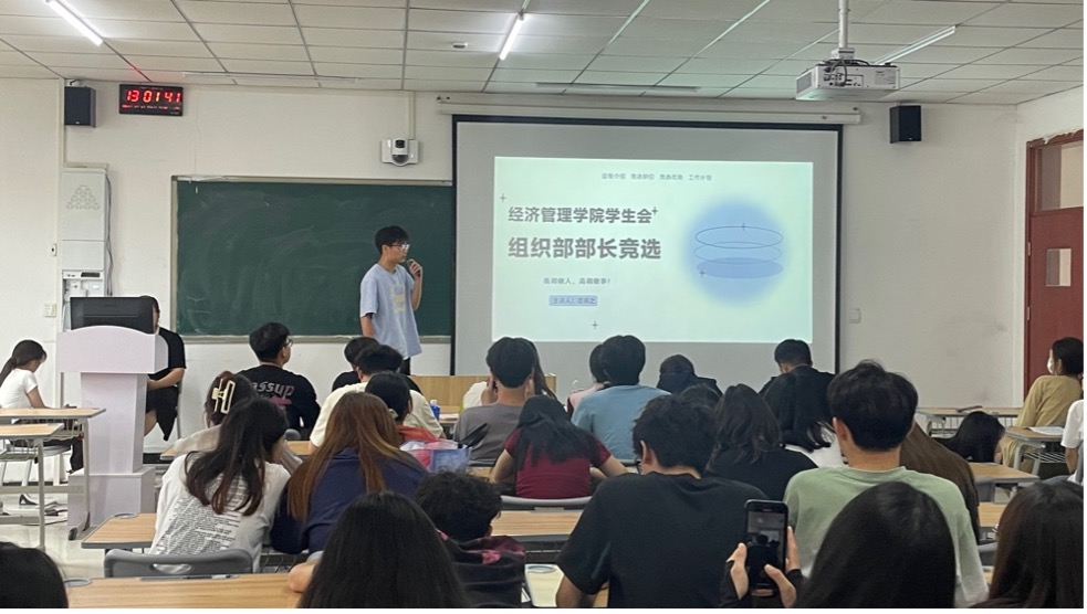 会上,户炫龙宣读本届学生会干部竞选流程、竞选规则、候选人名单。60余名学生干部候选人依次上台进行竞选演讲、发表竞选宣言,阐述对学生工作的认识理解,表达努力做好学生工作的决心信念。宣讲过后,现场观众以无记名方式进行投票支持心目中的候选人。
