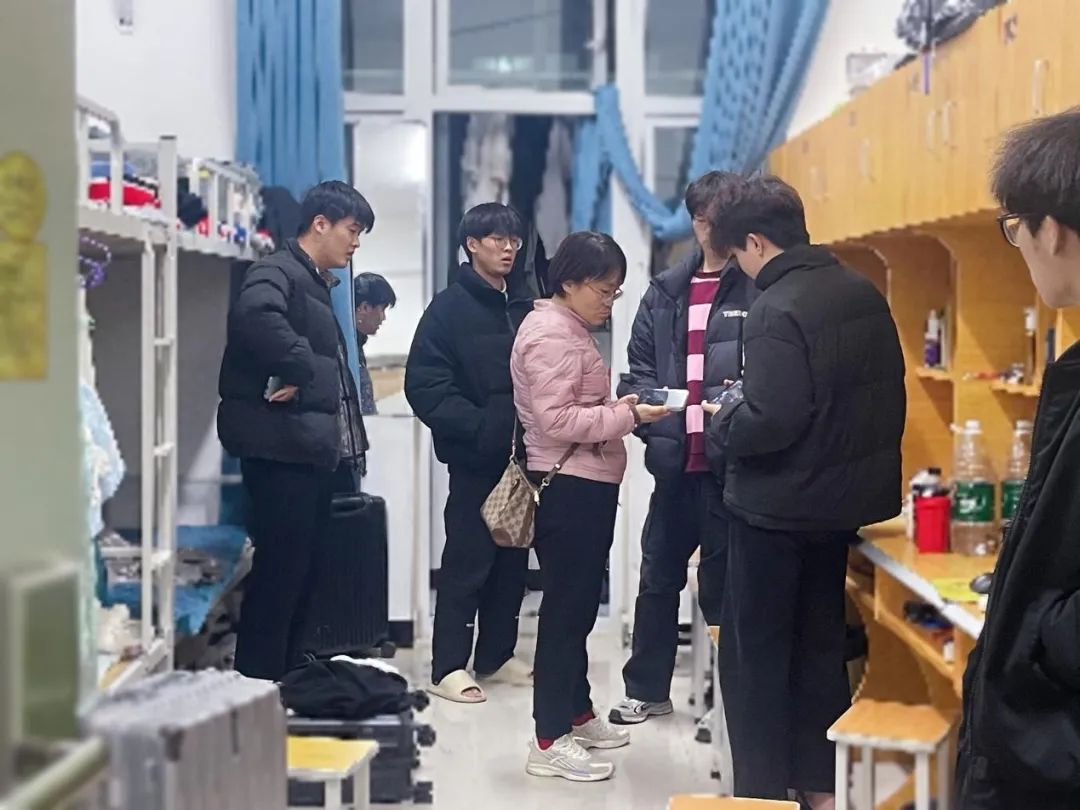 走访过程中,王盼红认真查看宿舍环境,叮嘱大家要严格遵守学校公寓管理相关规定,坚决不使用任何违规电器,注意防火、防电、防盗。宿舍作为重要生活场所,大家要齐心协力,共同打造整洁有序的宿舍生活环境。在生活习惯方面,要少玩游戏多走动,要早睡早起勤锻炼。在校期间,如果遇到困难,要及时跟辅导员反馈。此外,针对秋冬季流感问题,王盼红书记提醒大家要做好个人防护,戴好口罩、做好保暖、增强体质。同学们对老师的到访倍感振奋。在拉家常的过程中,同学们纷纷表示要好好珍惜在校时间,调整好学习目标,不断提升专业能力、专业本领、专业素养,为未来个人发展赢得筹码。