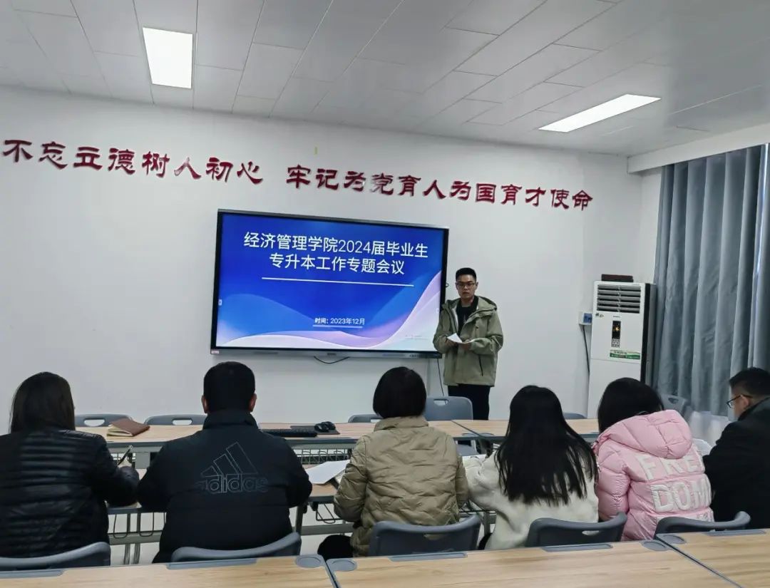 为适应专升本招考改革工作的要求,全力做好我院2024年普通高等学校专升本报考工作,我院于2023年12月4日在郑州校区502教室召开专升本考试报名工作部署会议,会议由经管学院党总支副书记王盼红主持,2021级全体辅导员参会。