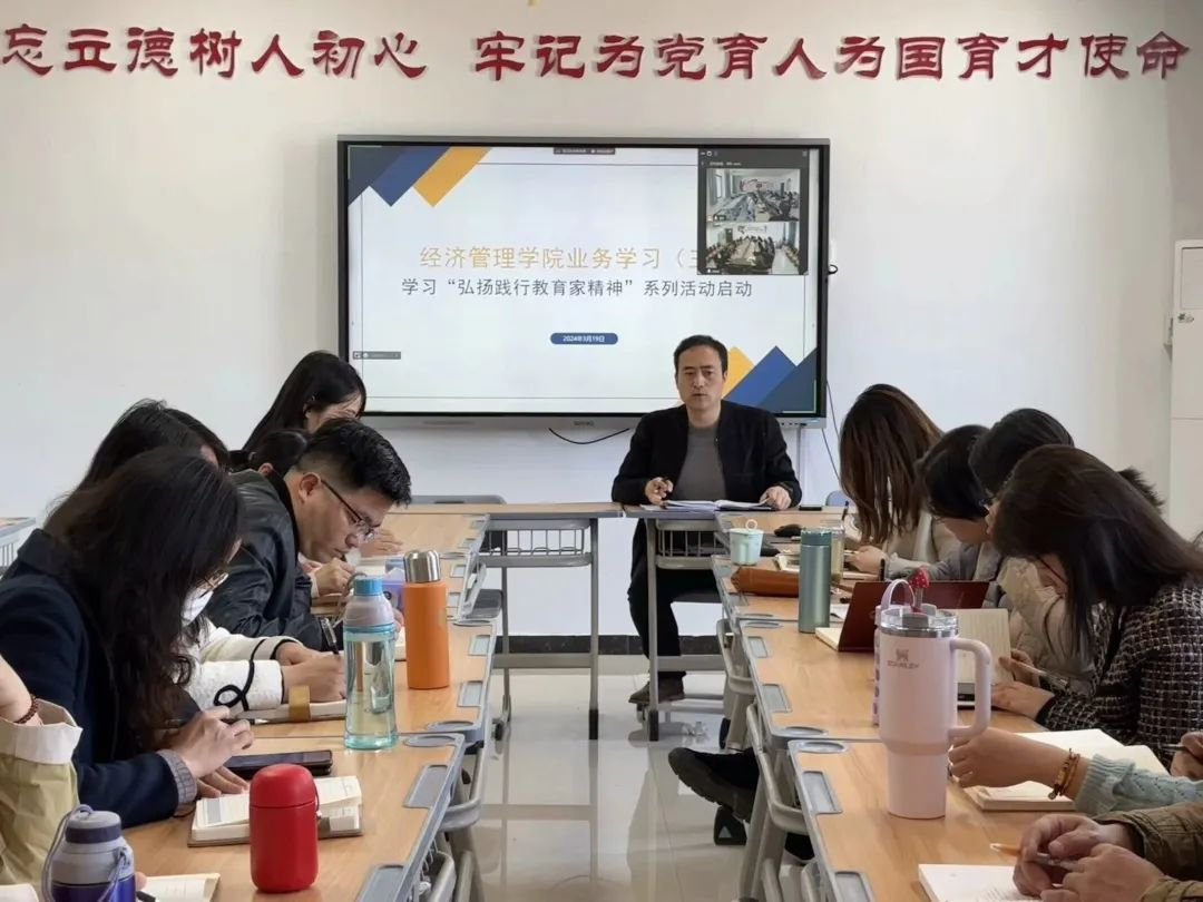 此外,会议还传达了“弘扬践行教育家精神”系列活动启动仪式暨河南省教书育人楷模巡回报告首场报告的相关内容:一要深刻认识弘扬践行教育家精神的时代意义;二要以教育家精神为引领,推动教师队伍建设高质量发展;三要精心谋划、周密部署,确保各项工作高质量高标准完成。希望学院全体教师能够领悟会议精神,珍惜荣誉、珍惜机会,争取早日成为有高尚教育情怀、成熟教育思想、独特教育风格、广泛教育影响的豫派实践型教育家。