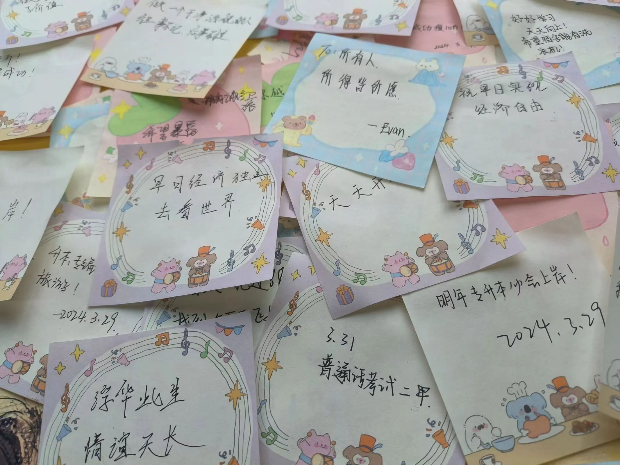 活动开始后,同学们认真写下自己对未来人生的期盼以及自己的小成就,也有不少同学写下了自己的烦心事。大家将自己的寄语贴在了活动展板上,这不仅是同学们对未来的寄语,更是对未来的畅想和期许。