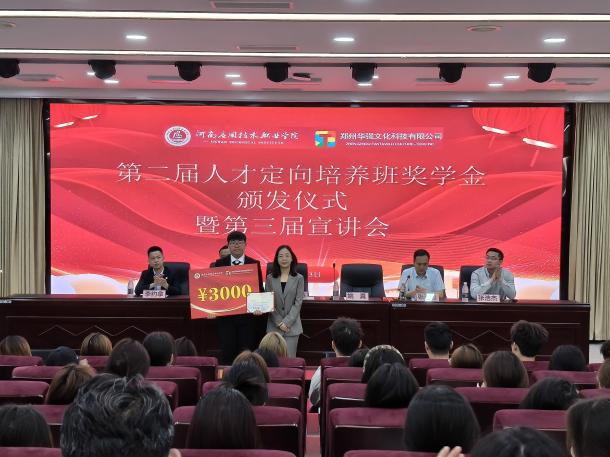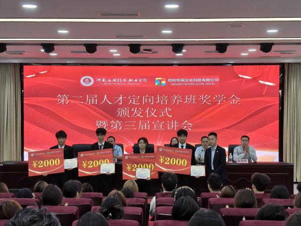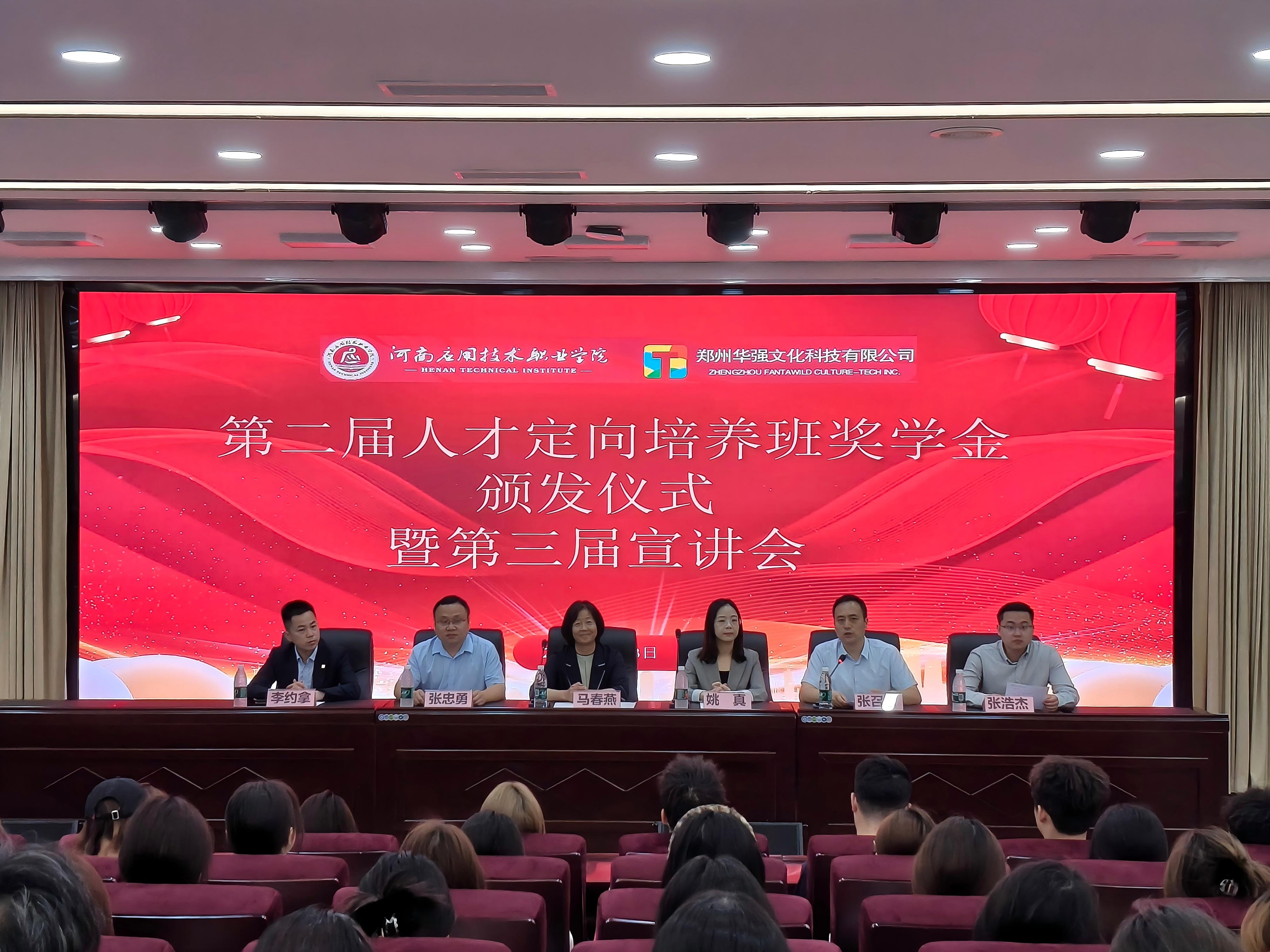 2025年5月13日上午,best365官方网站第二届“华强方特人才定向培养班”奖学金颁发仪式暨第三届企业宣讲会在学校学术报告厅隆重召开。郑州华强文化科技有限公司人力资源中心主任姚真、郑州华强方特酒店管理有限公司副总经理李约拿、郑州华强文化科技有限公司人力资源中心招聘经理张浩杰等企业领导及学校校企合作与就业处处长马春燕、best365官方网站党总支书记张忠勇出席会议,会议由best365官方网站院长张召哲主持。