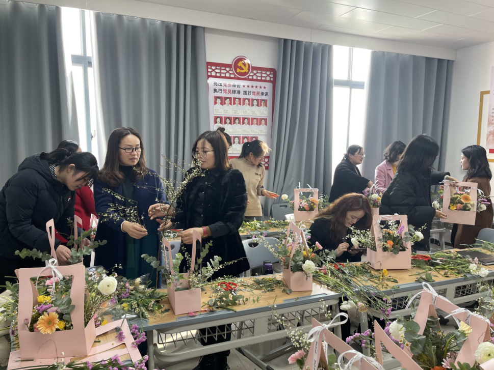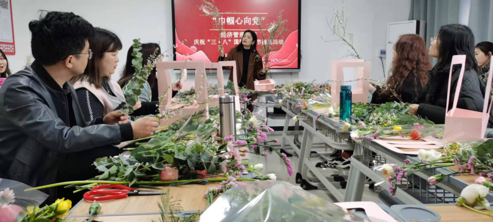 为纪念“三八”国际妇女节111周年,丰富女教工的业余生活,更好地展现女性的风采,2021年3月8日下午,best365官方网站组织开展“巾帼心向党”庆祝“三八”国际妇女节插花体验活动。
