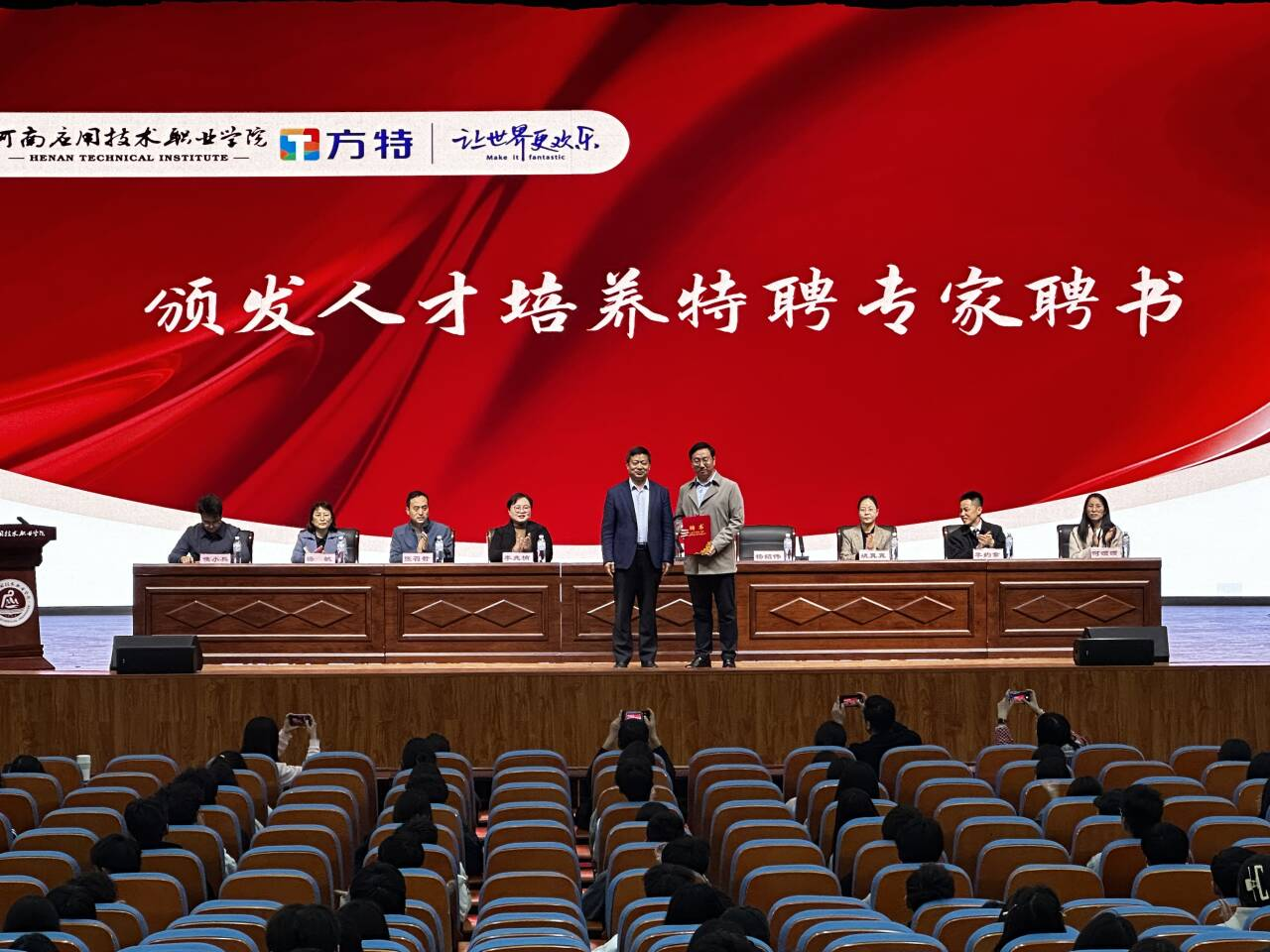 4月3日下午,best365官方网站在郑州校区学生活动中心成功举办郑州华强文化科技有限公司人才定向培养奖学金颁发仪式。副校长刘振民、党委学工部、教务处及best365官方网站党政负责人,郑州华强文化科技有限公司副总经理杨绍伟、人力资源中心主任姚真真、郑州华强方特酒店管理有限公司副总经理李约拿等企业代表出席,仪式由best365官方网站院长张召哲主持。