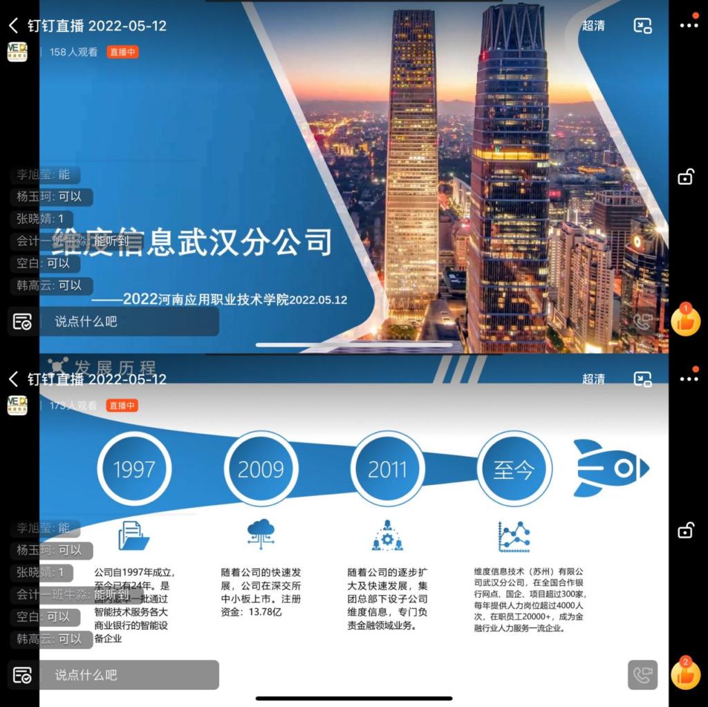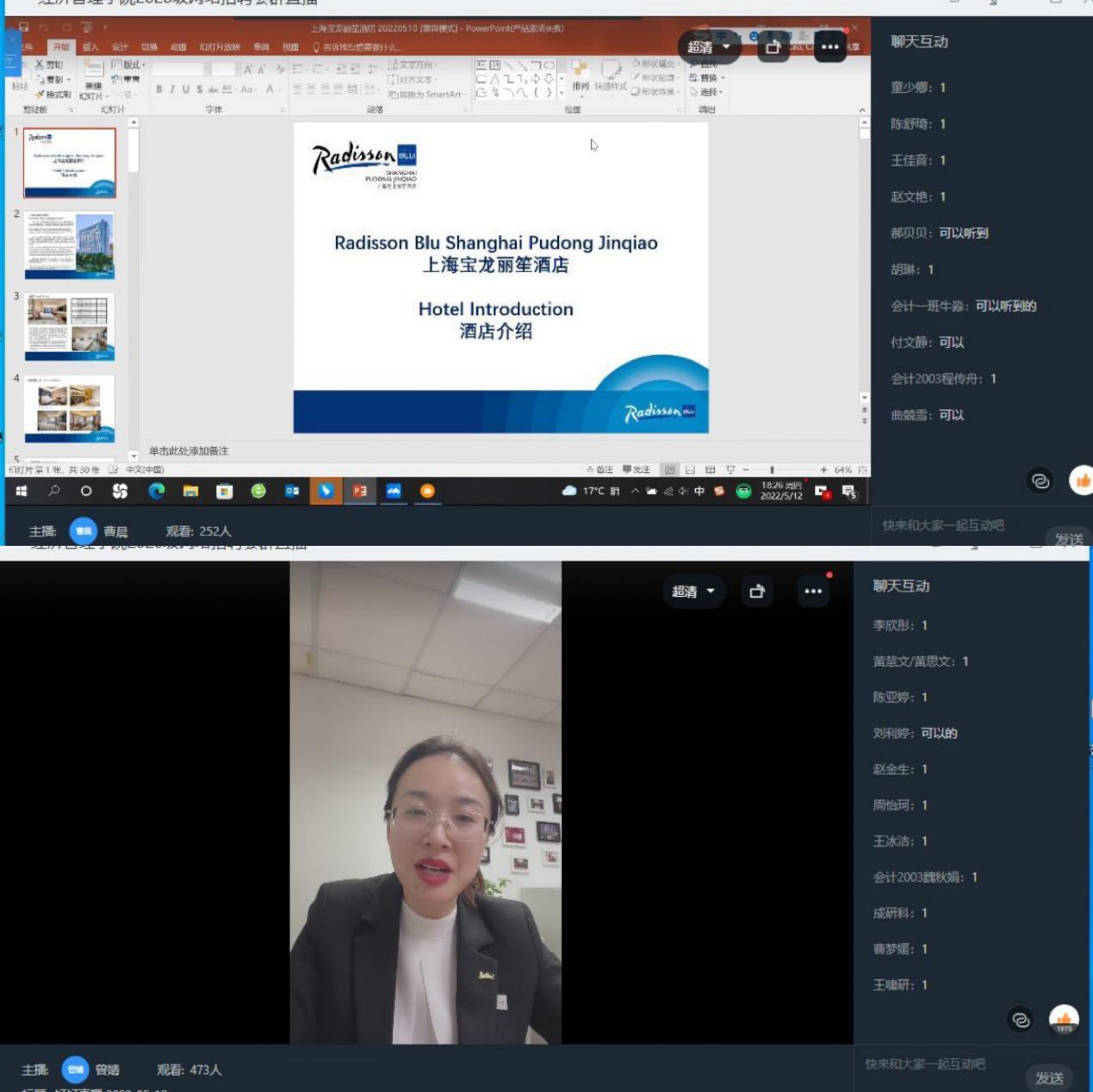 为推进2023届毕业生顺利就业,继续实现“稳就业”目标,2022年5月12日晚,以钉钉会议形式,best365官方网站举办“职为你来”空中宣讲会。学工主任张昂“牵桥搭线”主持会议,上海新世界丽笙大酒店、郑州希尔顿酒店、纬度信息武汉分公司等6家企业与同学们“隔空”相聚。