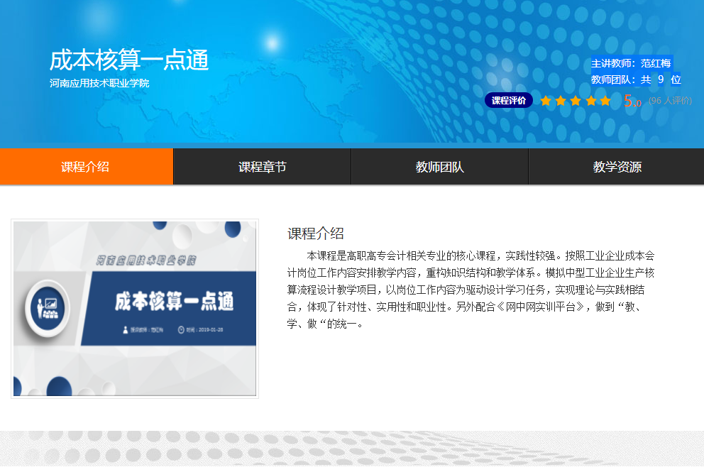 本课程是高职高专会计相关专业的核心课程,实践性较强。按照工业企业成本会计岗位工作内容安排教学内容,重构知识结构和教学体系。模拟中型工业企业生产核算流程设计教学项目,以岗位工作内容为驱动设计学习任务,实现理论与实践相结合,体现了针对性、实用性和职业性。另外配合《网中网实训平台》,做到“教、学、做“的统一。 链接:成本核算一点通 (chaoxing.com)