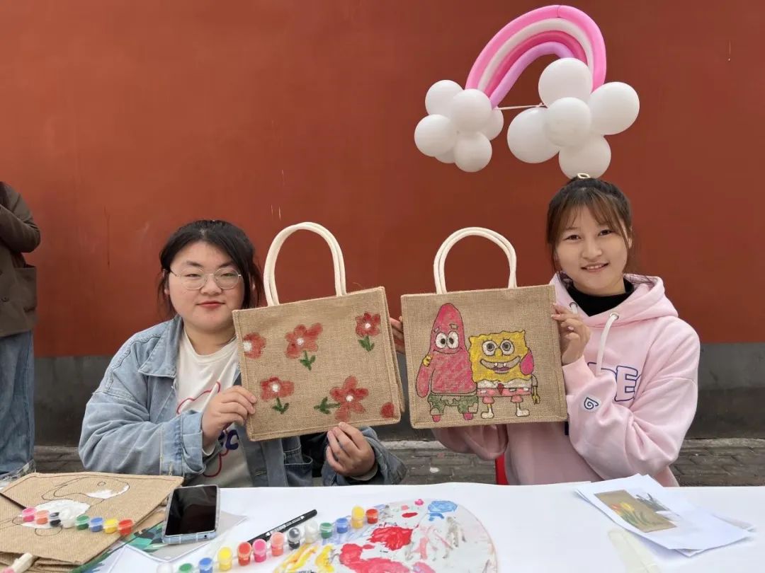 指尖彩绘,一半创新,一半艺术。在麻布包、白石膏上,在色彩与思维碰撞间,同学们大胆创新、细致勾勒、肆意着彩,用色彩表达情感,用巧笔绘色青春。