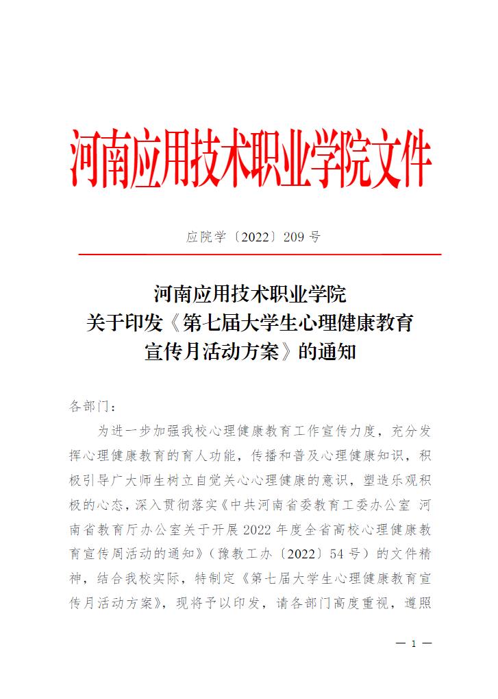 209号关于印发《第七届大学生心理健康教育宣传月活动方案》的通知-心理健康教育中心 (hati.edu.cn)