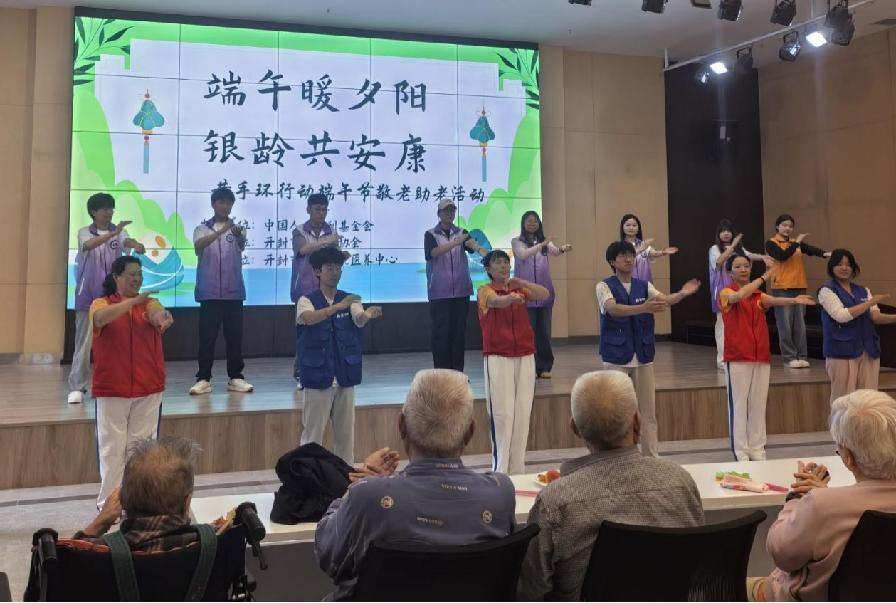 文艺表演环节,师生精心编排的红色情景剧、歌舞等节目,为银龄生活添上欢愉色彩。他们围坐在老人身旁,聆听岁月故事,关切询问身体近况与生活细节。每一句问候、每一次倾听,让端午的温情在笑语中传递,在互动中升温。