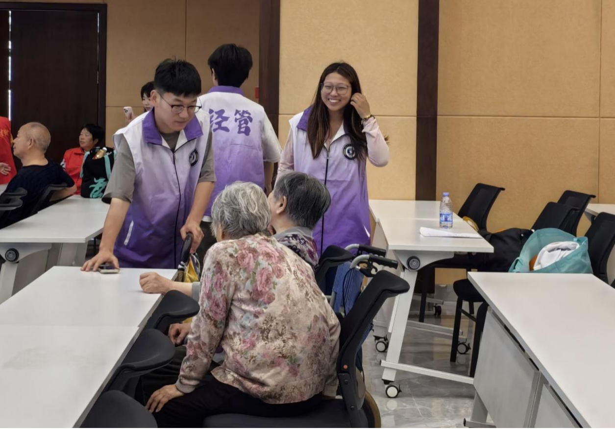 活动现场,志愿者们提前抵达医养中心,以饱满的热情投入场地布置,分工有序,默契配合。待老人入场时,学生们主动上前,搀扶老人缓缓步入会场,并致以端午的诚挚问候。