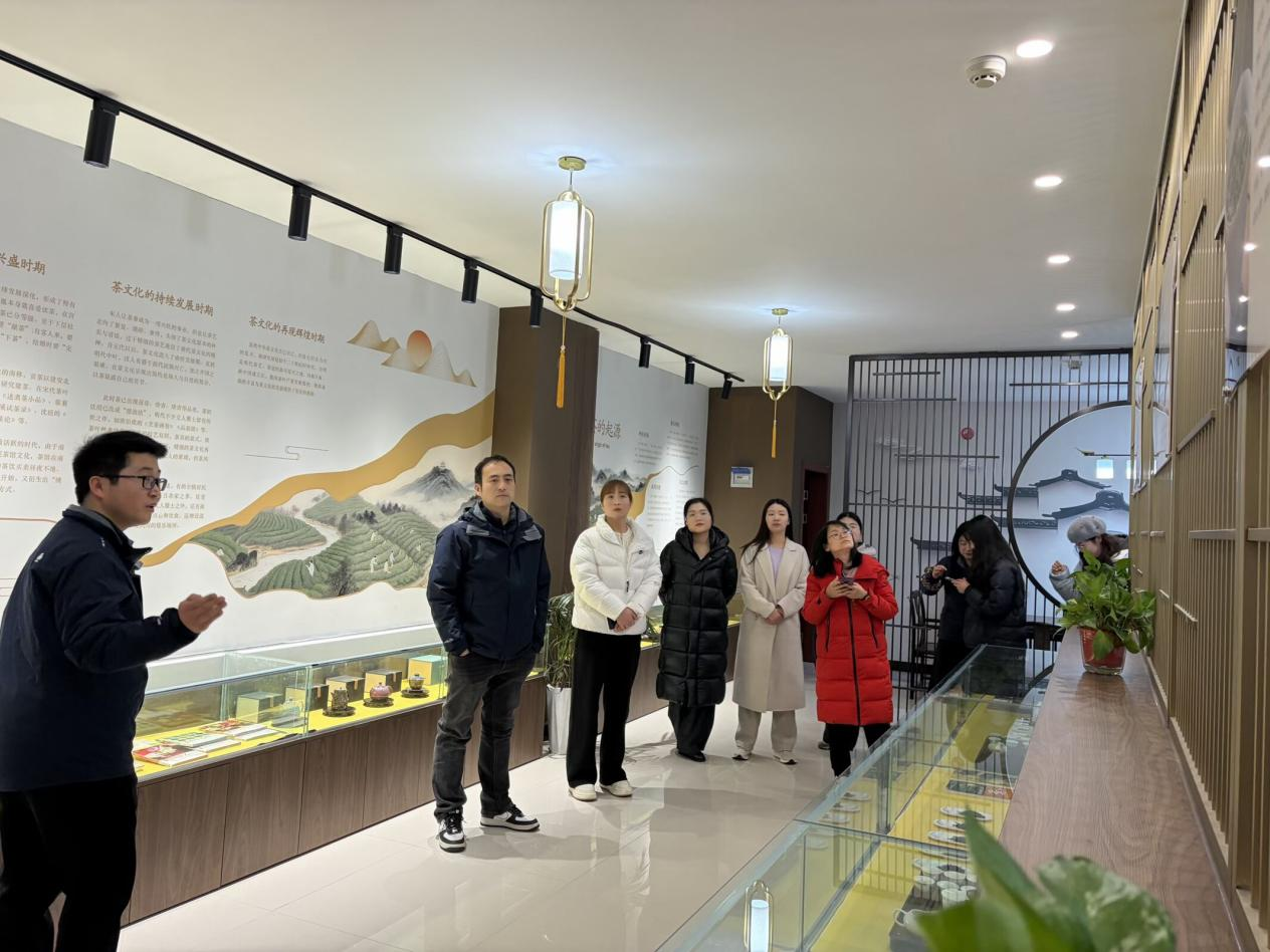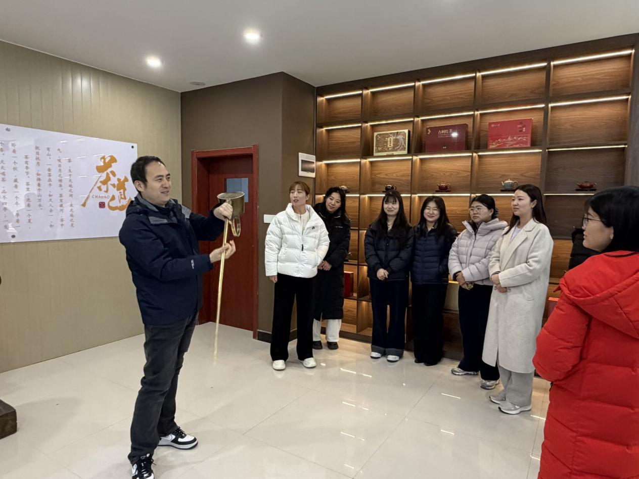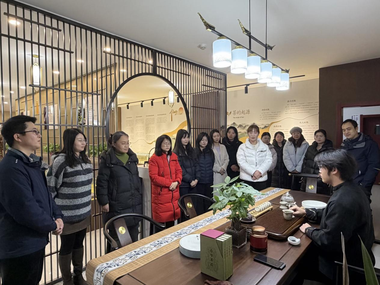 在茶艺文化科普基地,张留洋老师系统讲解了茶文化发展脉络与历史渊源,详细解读六大茶类特质与鉴别方法,分享茶艺礼仪规范与品饮讲究。教师们观摩茶具展品、茶叶标本及茶文化历史展陈,结合酒店管理与数字化运营专业人才培养目标,探讨如何将茶文化元素转化为特色服务项目、课程教学资源及实践教学活动,为专业建设注入文化动能。期间,学生进行非遗长嘴壶茶艺表演,并现场演绎绿茶玻璃杯冲泡、功夫茶艺等经典技法。教师们在温具、置茶、冲泡、奉茶的细致流程中,感受茶道“和、敬、清、寂”人文底蕴,在清雅品茗中交流传统文化现代传承与思考。