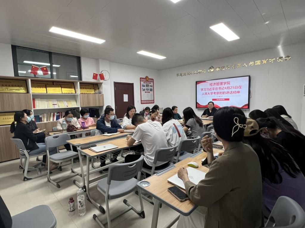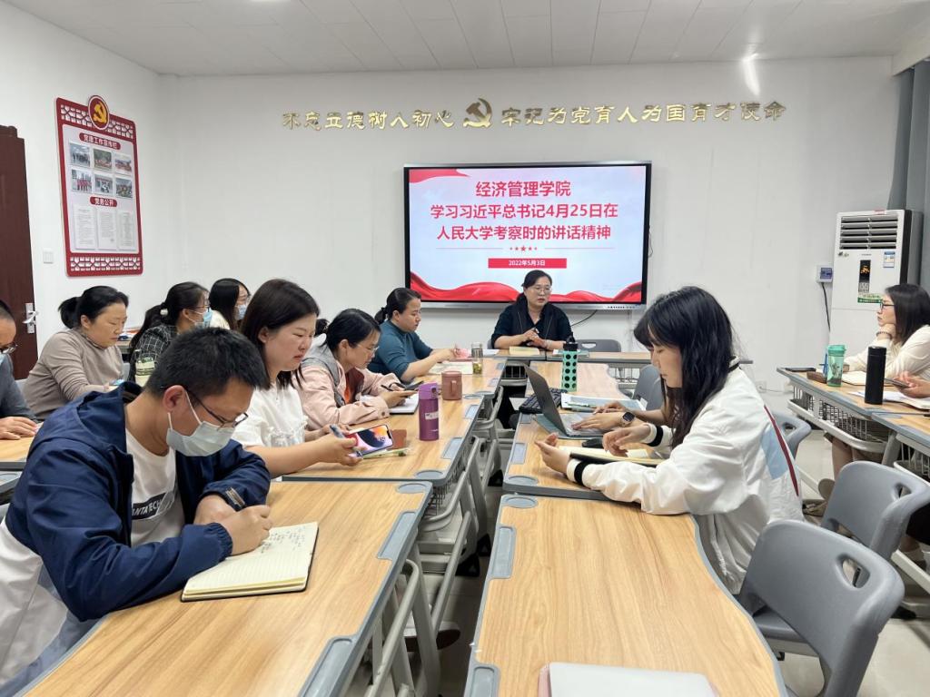 2022年5月3日下午,best365官方网站党总支在办公楼505党员活动室组织学习习近平总书记在中国人民大学考察时的重要讲话精神,会议由书记李兆楠主持,全体党员教师参与学习。