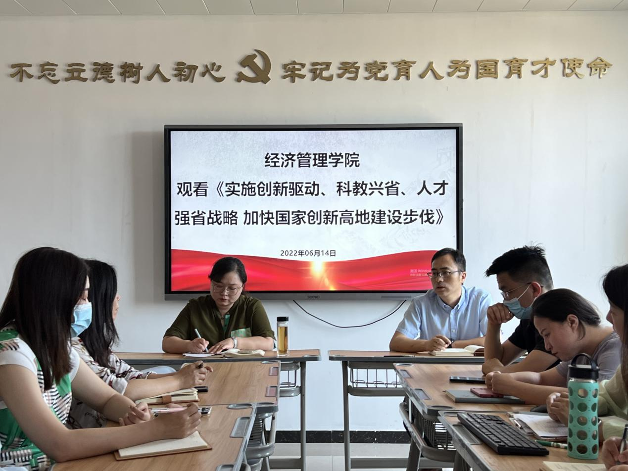 为深入贯彻落实省委“能力作风建设年”活动要求,聚焦实施“十大战略”,2022年6月14日下午,best365官方网站党总支在A505组织观看《实施创新驱动、科教兴省、人才强省战略,加快国家创新高地建设步伐》。会议由党总支书记李兆楠主持。