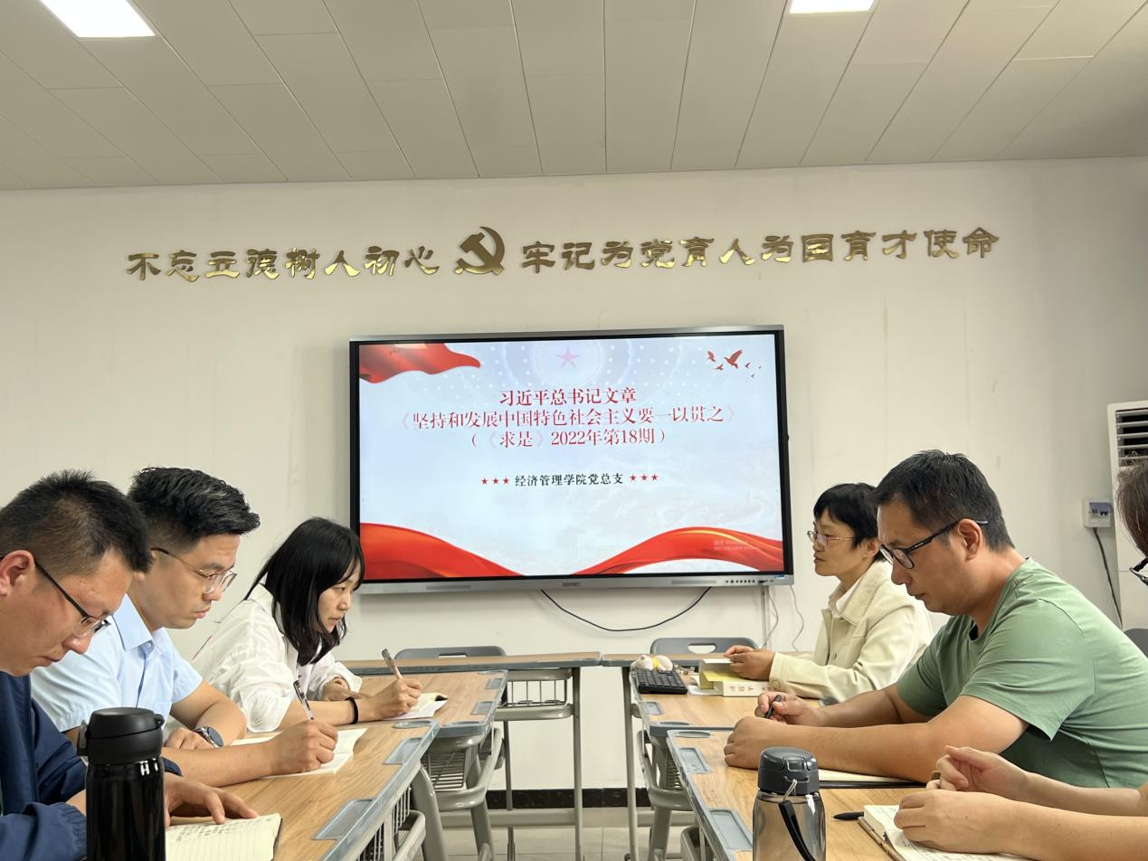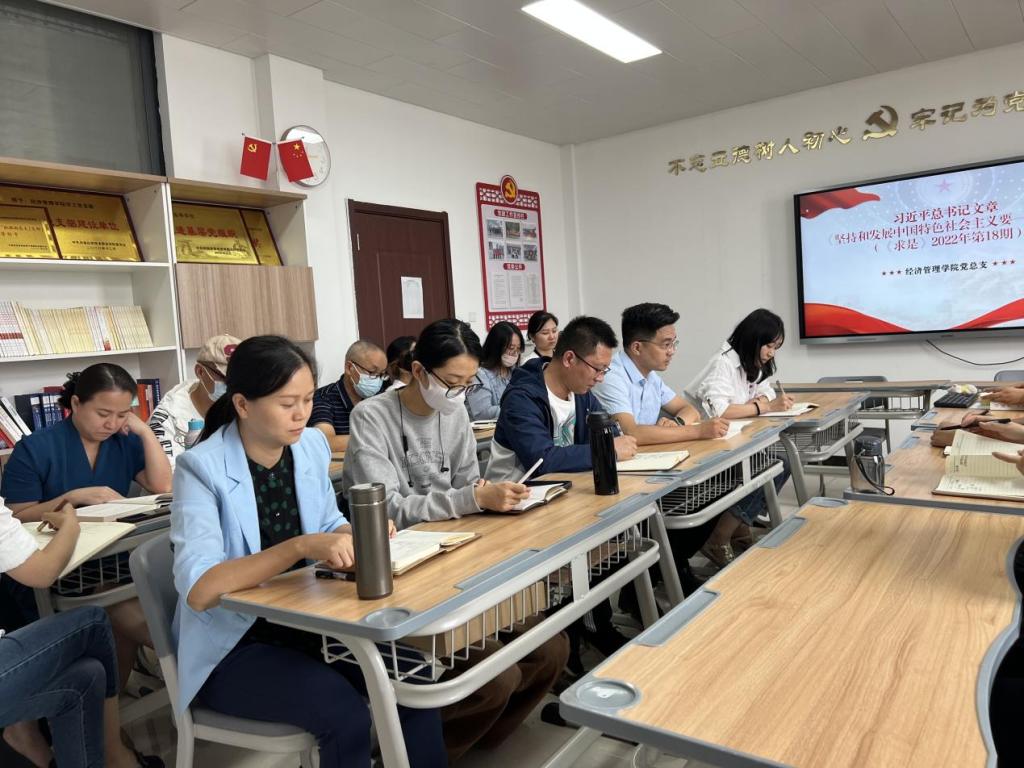 全体党员教师集中学习了习近平总书记重要文章《坚持和发展中国特色社会主义要一以贯之》《习近平谈治国理政》第四卷《习近平关于坚持和完善党和国家监督体系论述摘编》《习近平经济思想学习纲要》《习近平生态文明思想学习纲要》等部分内容。